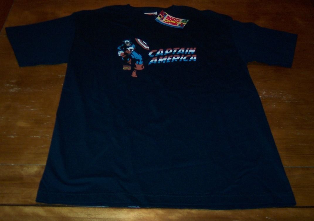 This is a CLASSIC CAPTAIN AMERICA Marvel Comics T-shirt. It is a size MEDIUM, and it is New with the tag. It is 20 inches from armpit to armpit and 29 inches in length. Winning bidder to e-mail within 3-days if not paying right away, and payment to be received within 10-days. AD