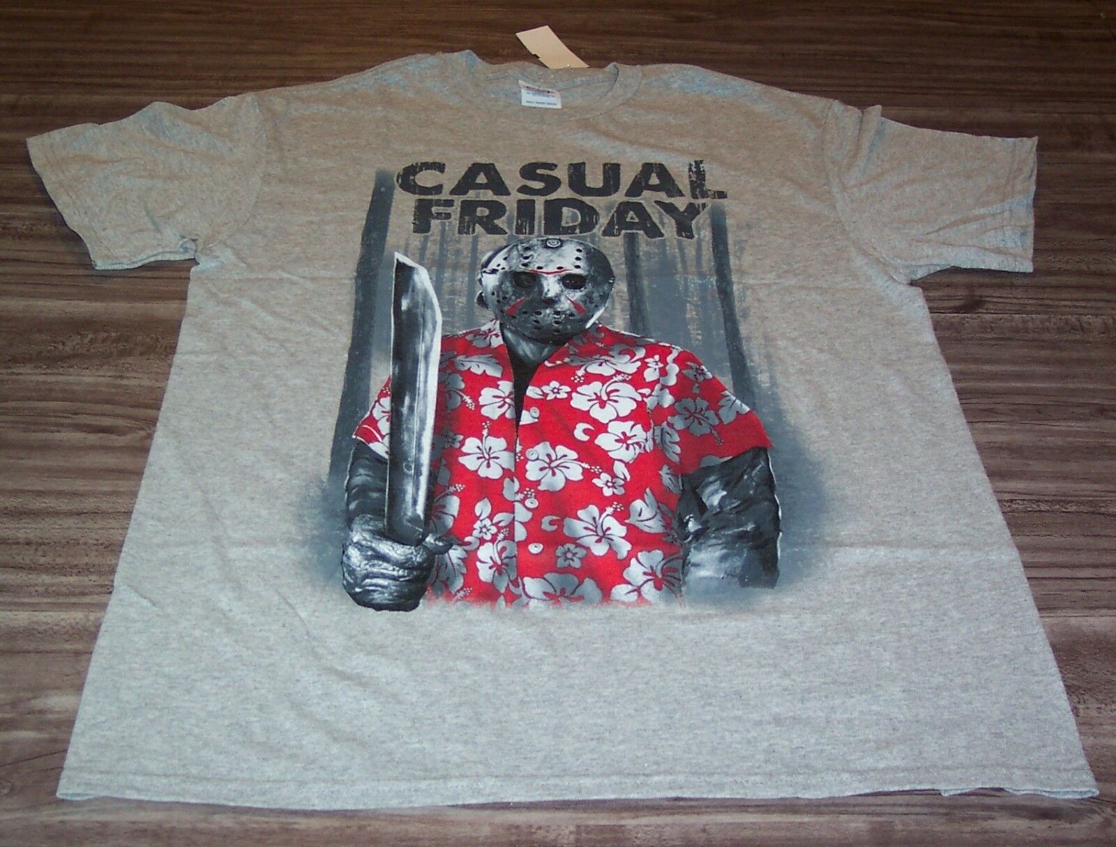 This is a FUNNY Friday The 13th JASON Casual Friday T-shirt. It is a size MEDIUM and it is NEW with the tag. It is 20 inches from armpit to armpit and 29 inches in length. Combine auctions to save on shipping. AD