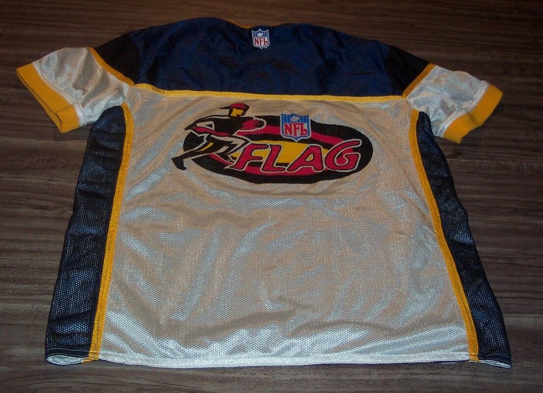 This is a LOS ANGELES CHARGERS NFL REVERSIBLE FLAG FOOTBALL JERSEY. It is a size SMALL and it is in great condition. It is CLEAN!. NO Stains, Tears, or Defects. It is 20 inches from armpit to armpit and 27 inches in length. Combine auctions to save on shipping. Winning bidder to e-mail within 3-days and payment to be received within 10-days. AG