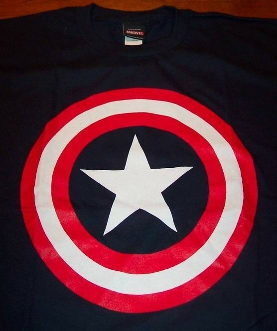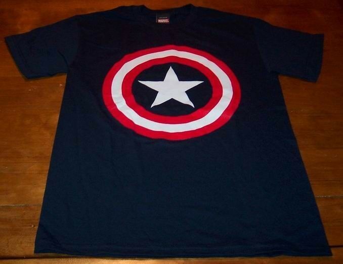 This is a CLASSIC CAPTAIN AMERICA SHIELD Marvel Comics T-shirt. It is a size SMALL, and it is NEW. It is 17 1/2 inches from armpit to armpit and 27 inches in length. Combine auctions to save on shipping. Winning bidder to e-mail within 3-days if not paying right away. Payment to be received within 10-days. D3