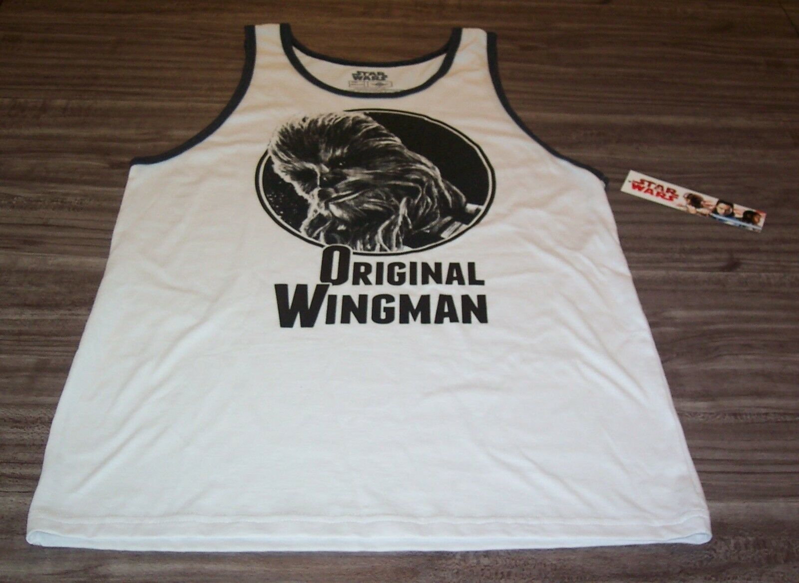 This is a STAR WARS CHEWBACCA CHEWY Original Wingman SLEEVELESS TANKTOP SHIRT. It is a size SMALL, and it is NEW w/ TAG. It is 20 inches from armpit to armpit and 30 inches in length. Combine auctions to save on shipping. D2AG