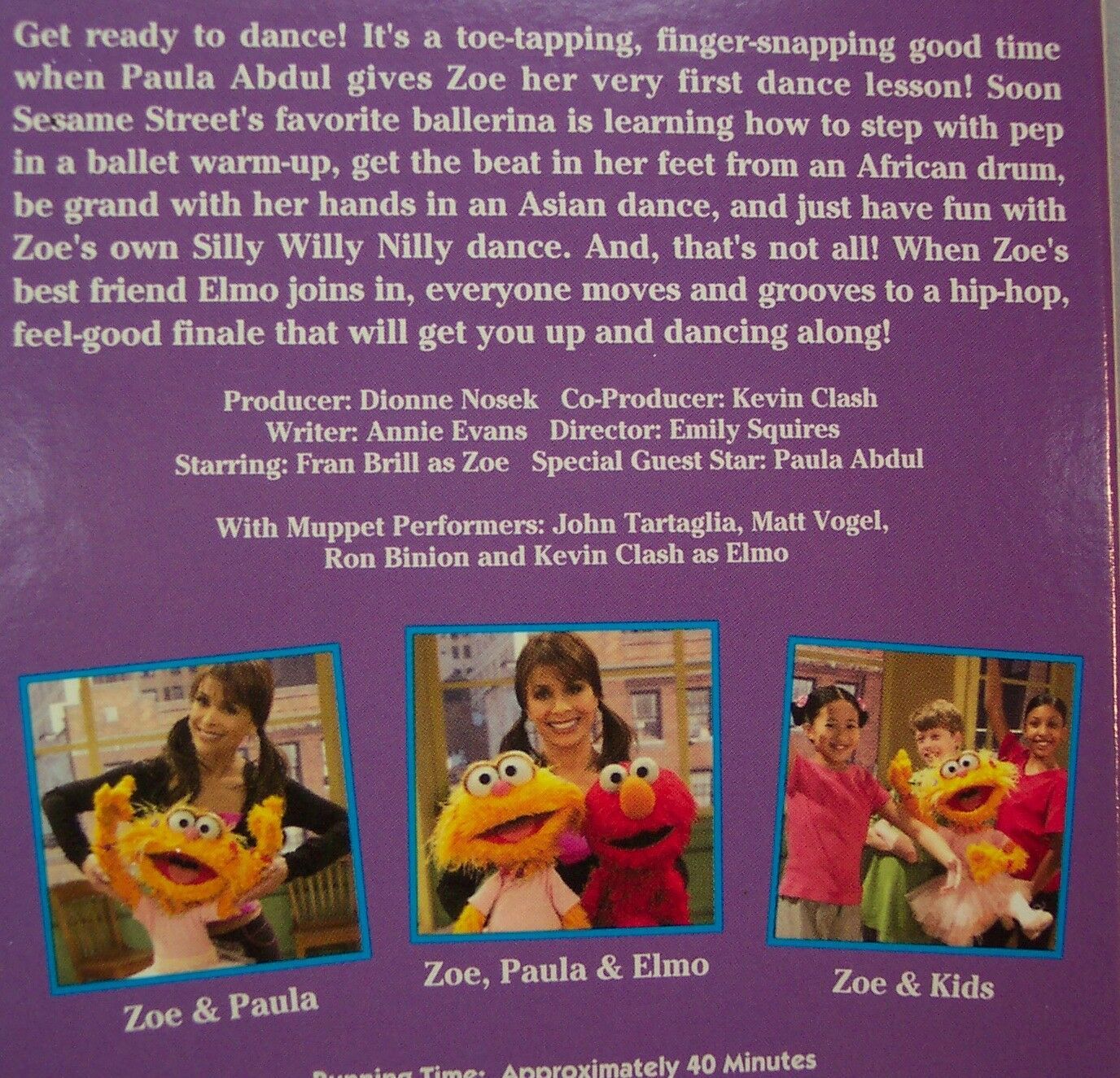 Sesame Street ZOE'S DANCE MOVES VHS VIDEO 2003 W/ Paula Abdul