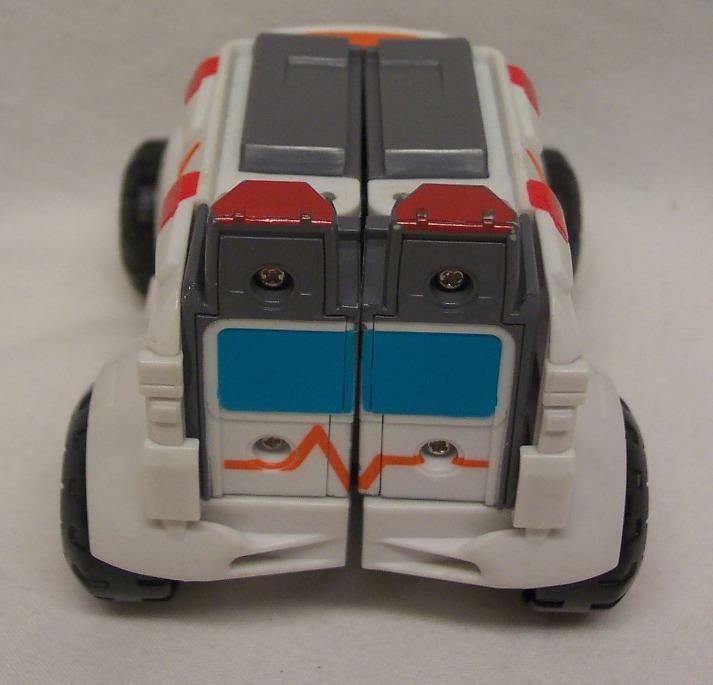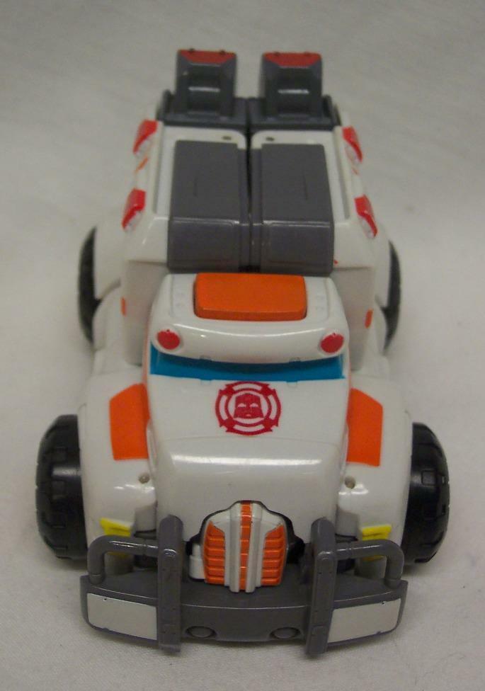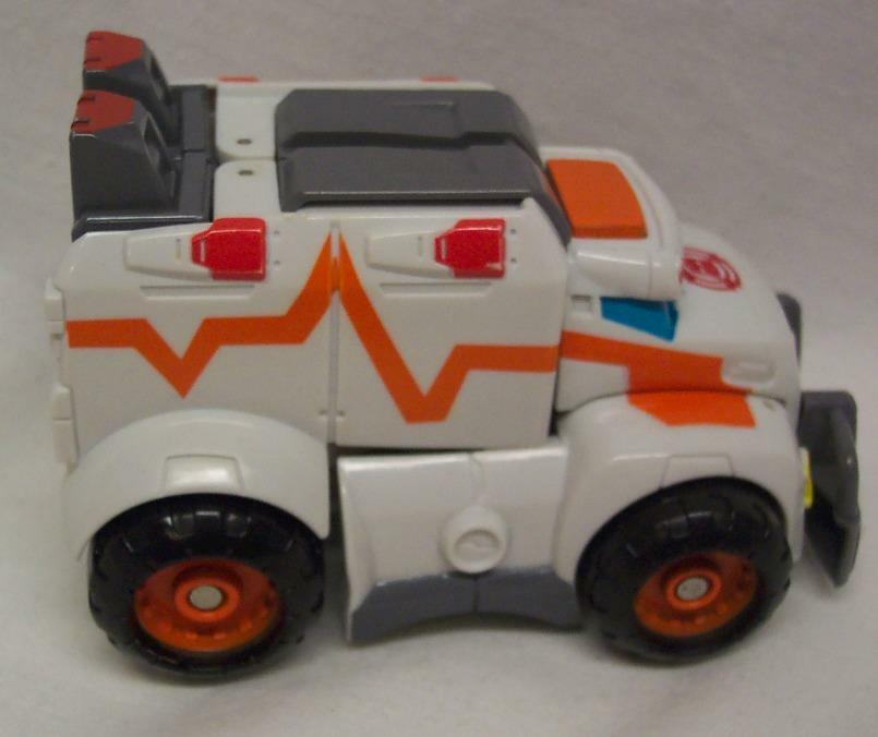 Made by Hasbro. It is about 5 inches tall when open as robot. It is in Great Condition. It has minor wear from use, but nothing major. There is an orange button on top of ambulance. Press it and it opens up into robot form. Combine auctions to save on shipping. Please contact me if you need to make other payment arrangements.