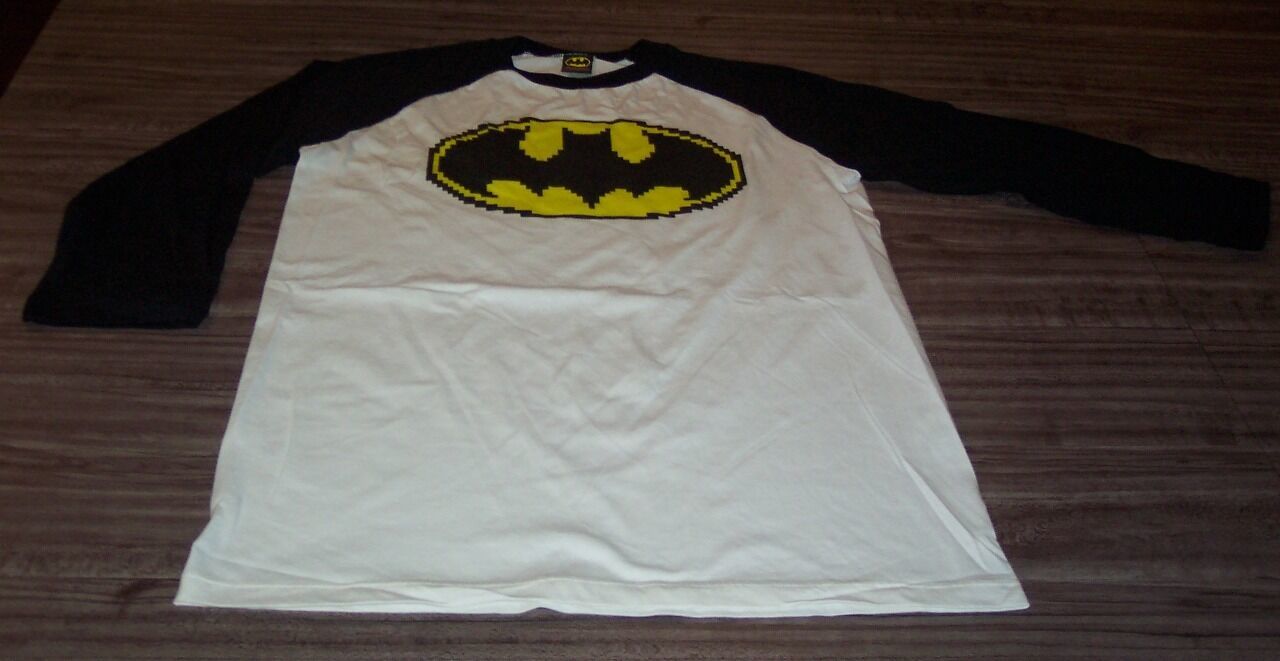This is a VINTAGE 70'S STYLE Dc Comics BATMAN 8-BIT Long Sleeve T-shirt. It is a size LARGE, and it is NEW. It is 21 inches from armpit to armpit and 31 inches in length. It has 70's Style 3/4 length sleeves. Winning bidder to add $5.00 shipping in the US(international will be more). Combine auctions to save on shipping. Winning bidder to e-mail within 3-days and payment to be received within 10-days. D3AG