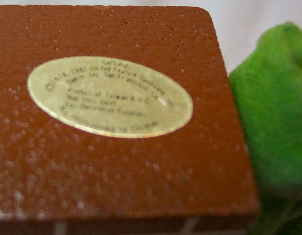 This is a VINTAGE WOODEN GARFIELD AS SANTA IN CHIMNEY CHRISTMAS HOLIDAY ORNAMENT. It is in good condition but has some wear from age. Made by Dakin in 1981. It is about 2 1/2 inches tall. The date is not on the ornament. Combine auctions to save on shipping. Please contact me if you need to make other payment arrangements. EAG