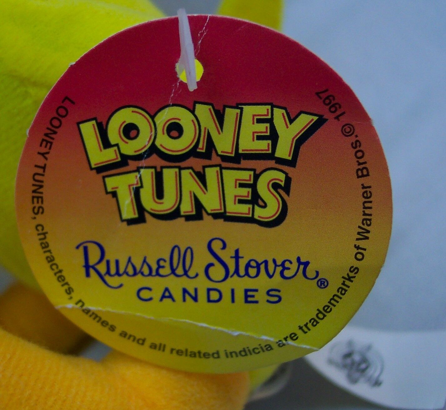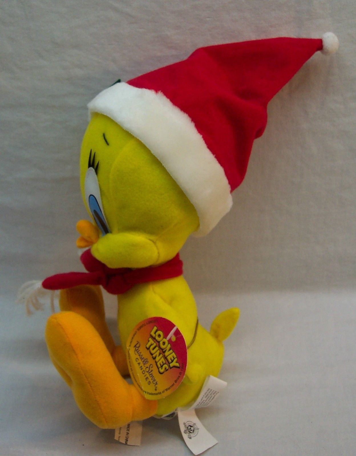 This is a WB Looney Tunes HOLIDAY TWEETY BIRD W/ SANTA HAT Plush Stuffed Animal Toy. Made for Russel Stover in 1997. It is 8 inches tall. It is in Great Condition with original tag. It is CLEAN! No Tears. No Defects. There is a stretchy gold string behind his back that could help hold a small gift in place. Could be moved to the front as well. CUTE! Combine auctions to save on shipping. Please contact me if you need to make other payment arrangements. AG