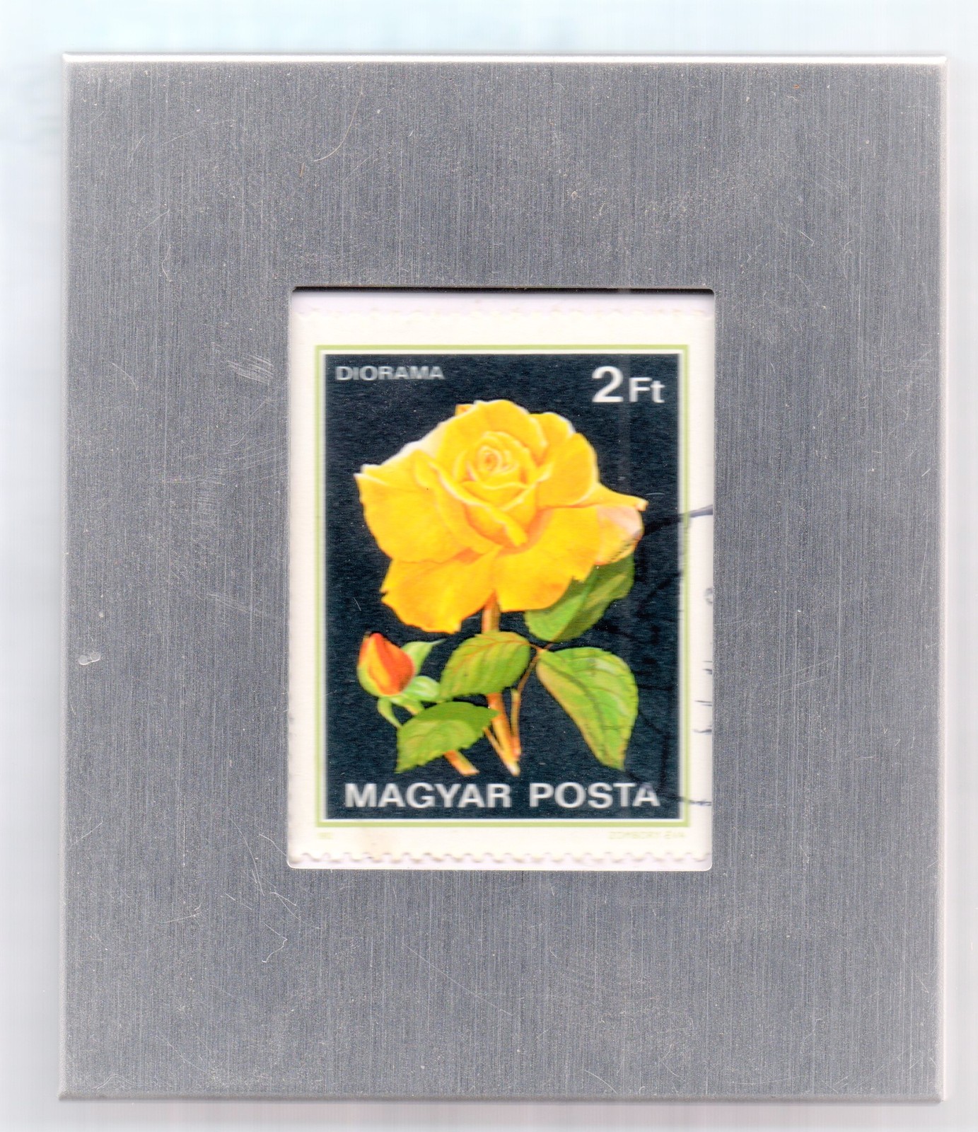 Framed Mini-Art Collectible Postage Stamp - Yellow Hungarian Rose
