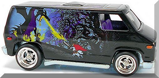 Description: Black, w/Purple interior, Clear windows, Dragon blowing flames w/Prince on horseback in forest on passenger side, Prince and Sleeping Beauty dancing w/multi colored background on driver side, Red, Green and Blue fairies w/'Disney’, and ‘Sleeping Beauty’ on rear, detailed taillights, headlights, turn signals, and side markers, Purple rose branch pattern on roof, Unpainted Thailand Base, w/ChrRRC4SP’s. 061519-061519P-D37