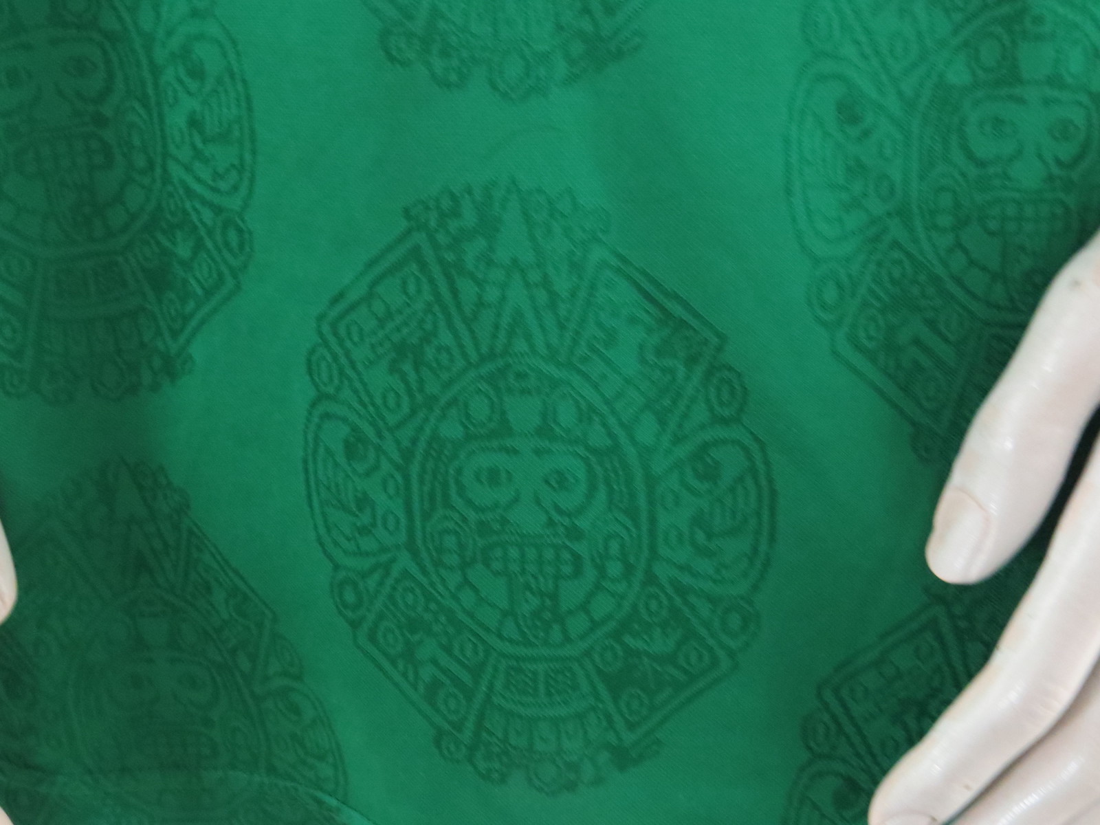 Up for sale is a team Mexico soccer jersey by Athletica. It has a green base colour with red and white trim going down the right side. The front of the jersey has the classic Aztec mask as part of the pattern there are several of these masks all over the front. The back of the jersey is blank so it is perfect for personalization. Sorry, I do not have a year for this one but from tagging and markings, it likely dates from the early 2000s. What a great addition to any soccer jersey collection.