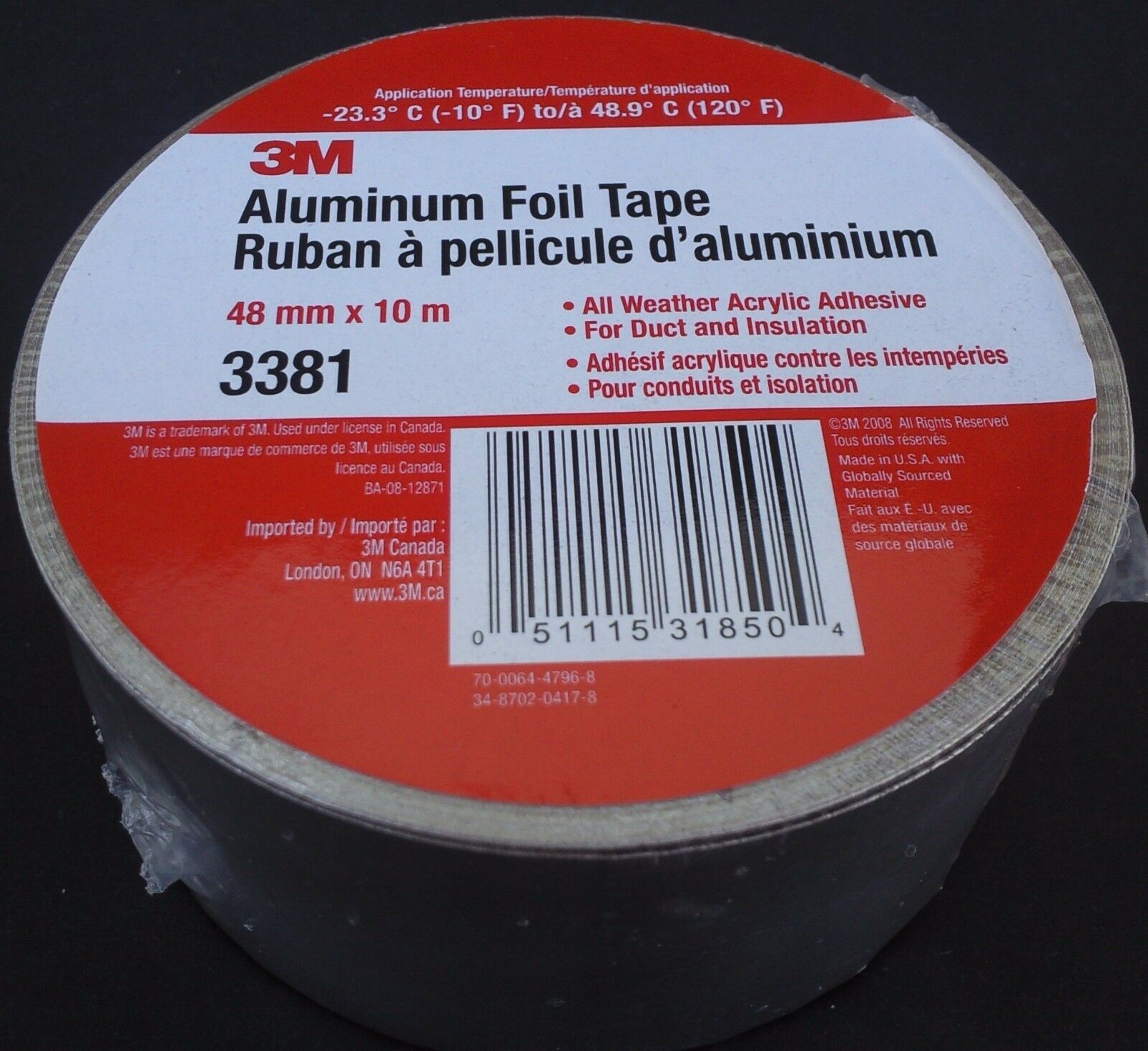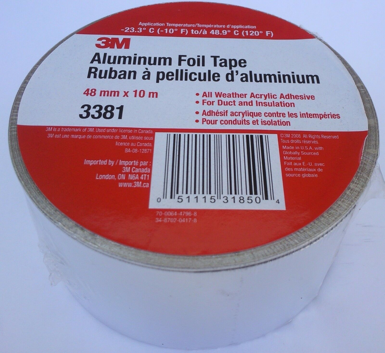 3M? Aluminum Foil Tape 3381, annealed aluminum foil with an all weather acrylic pressure sensitive adhesive. The 3381 tape is designed for duct and insulation applications. The foil also serves as an excellent barrier against moisture, dust, flame, and certain chemicals. Acrylic adhesive supplies superior temperature, U.V. and solvent resistance.