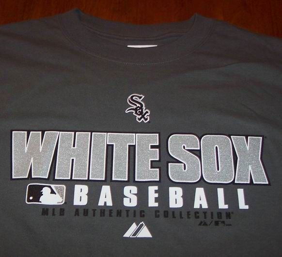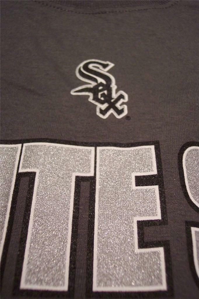 This is a CHICAGO WHITE SOX MLB BASEBALL T-shirt. It is a size MEDIUM, and it is NEW. It is 22 inches from armpit to armpit and 32 inches in length. It is an official MAJESTIC Shirt. The silver Sparkles and Looks Awesome! Winning bidder to add $5.00 shipping in the US(international will be more). Combine auctions to save on shipping. Winning bidder to e-mail within 3-days and payment to be received within 10-days. D9AG