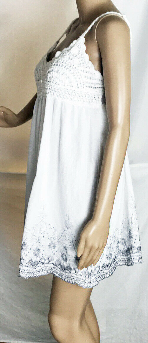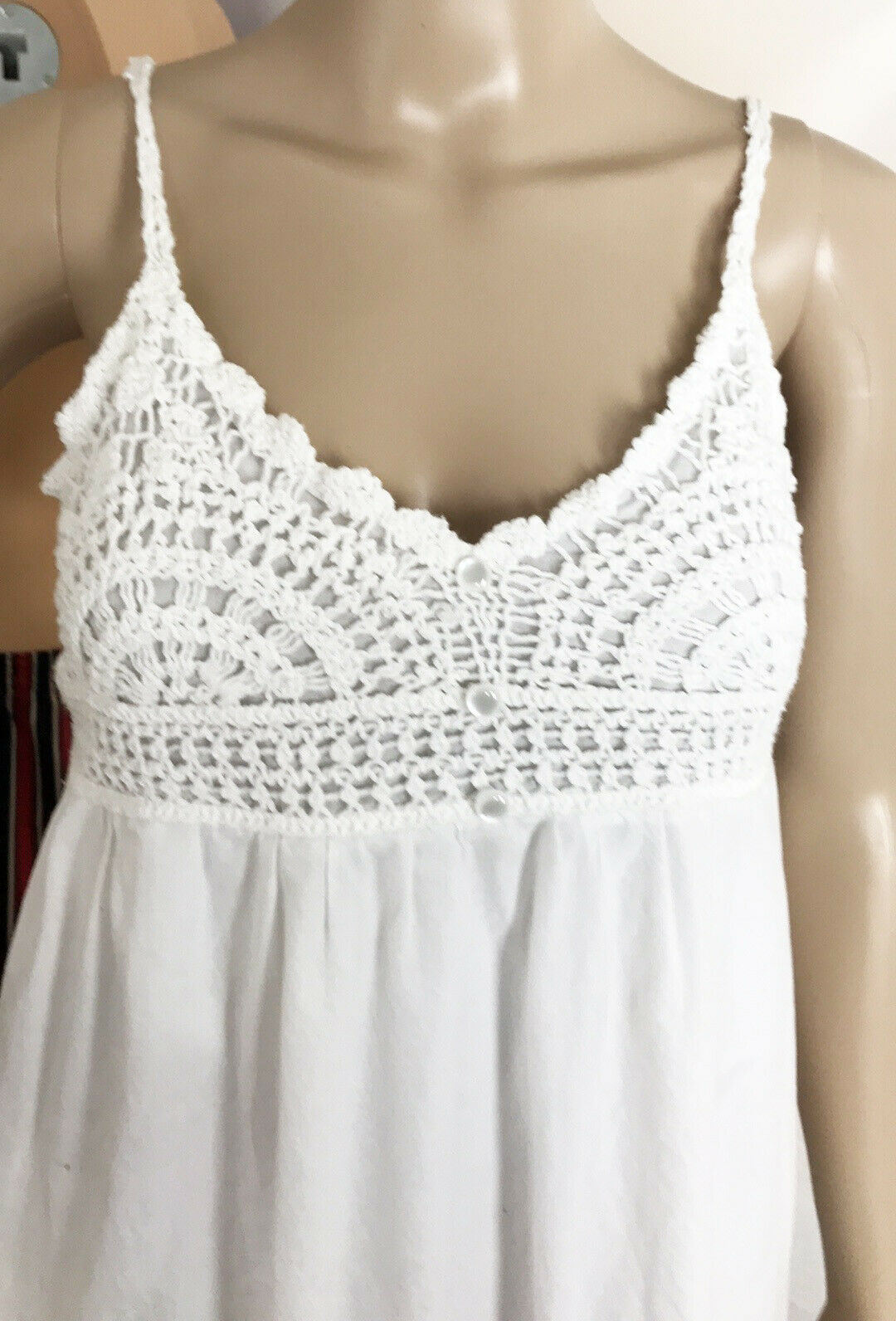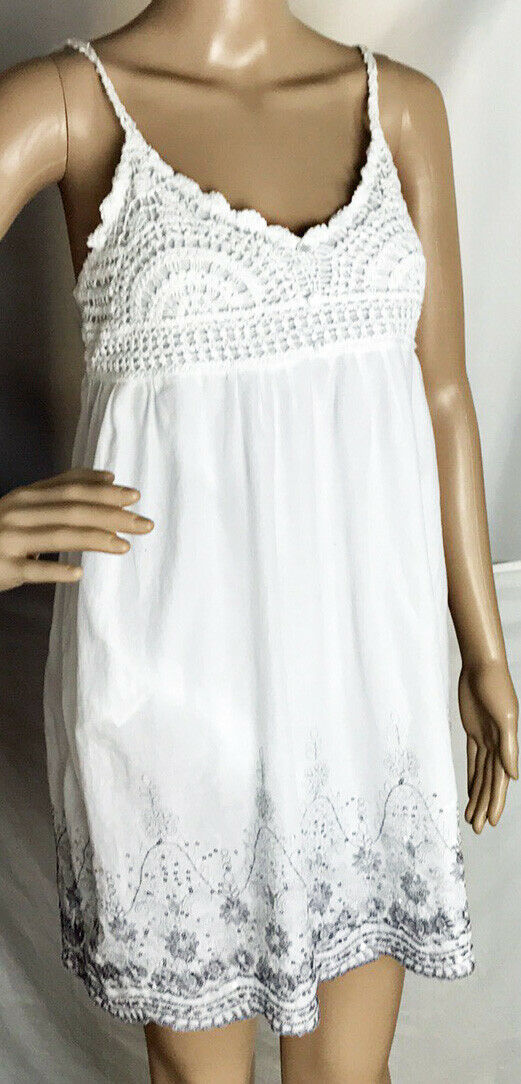 Ultra Pink Women's Dress Size M White Embroidered Cotton Crochet Top Spaghetti S