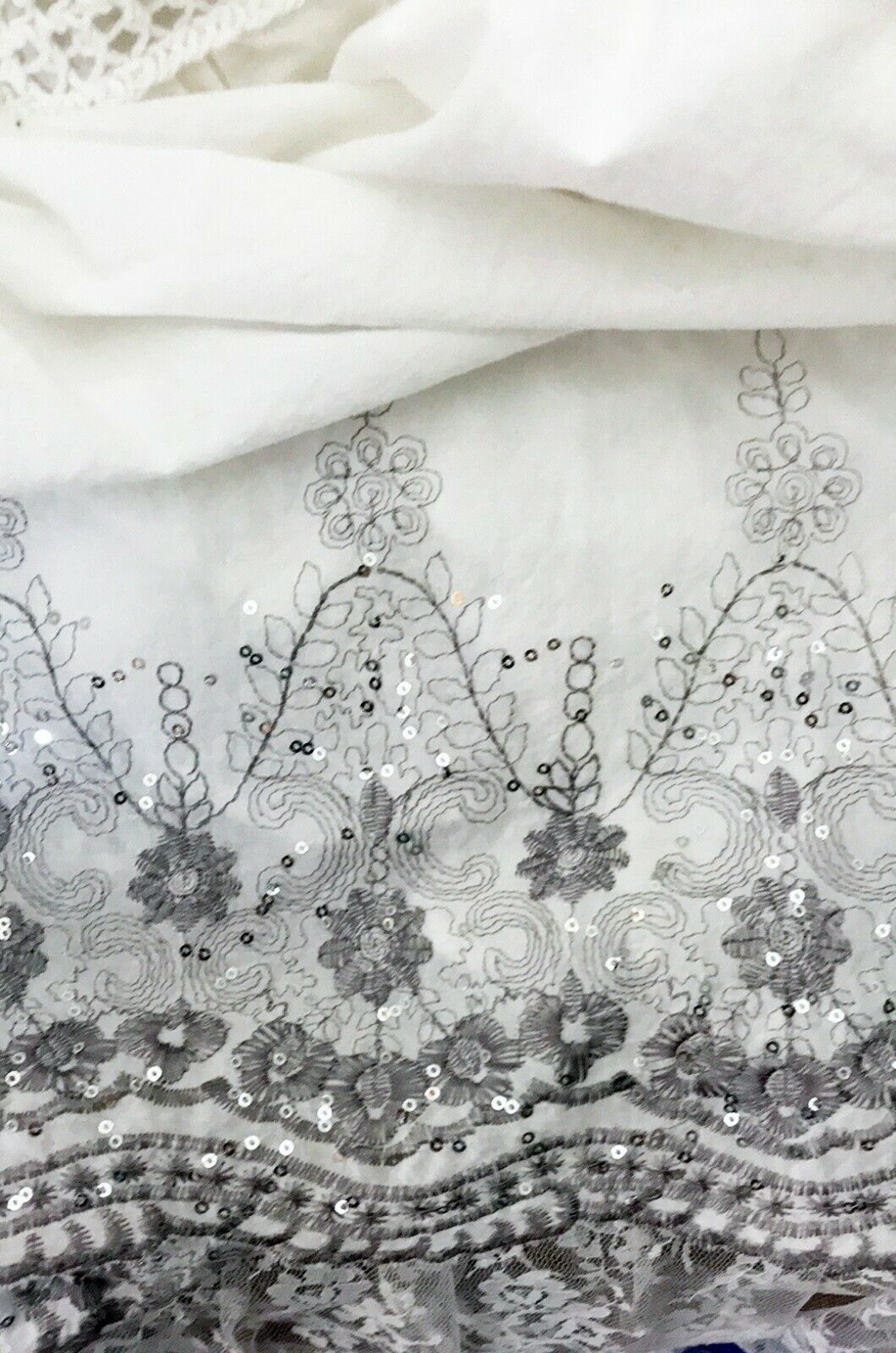 Ultra Pink Women's Dress Size M - White Embroidered Cotton - Crochet Top - Spaghetti Straps. Armpit to armpit across the front measures 17". Length from back of neckline to hem is 32". Excellent Used Condition - See Photos for further description.