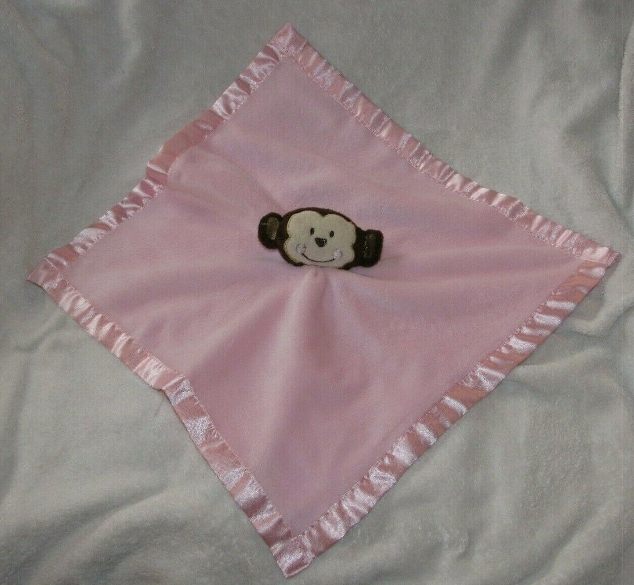 Baby Essentials Pink Brown Monkey Blanket Rattle Satin Security Lovey girl