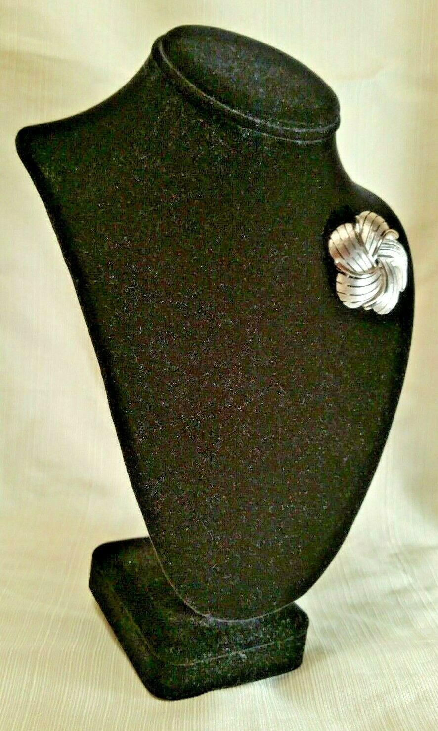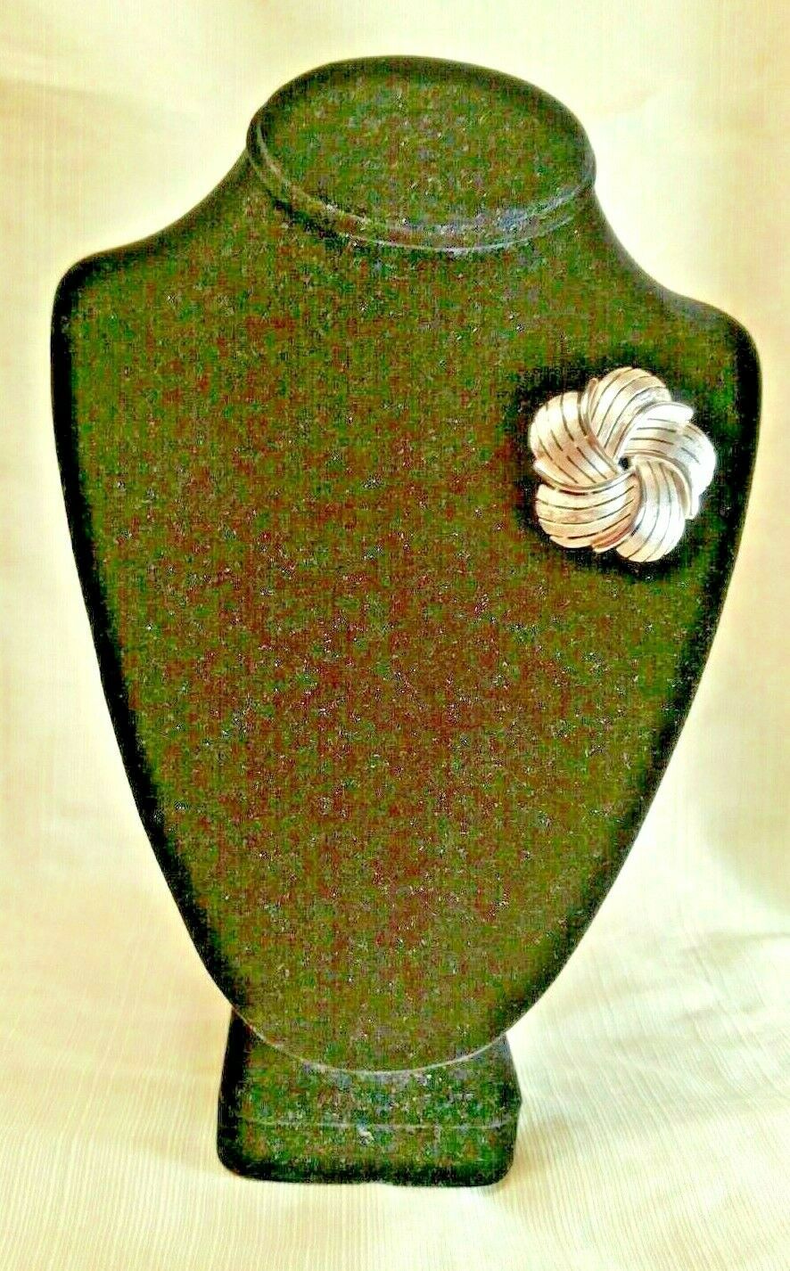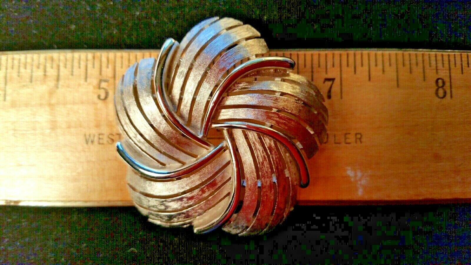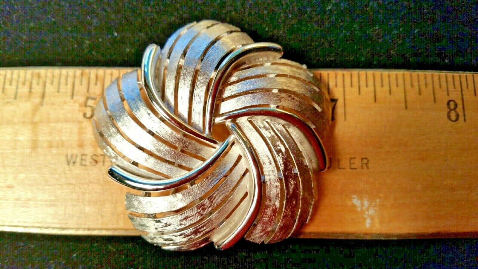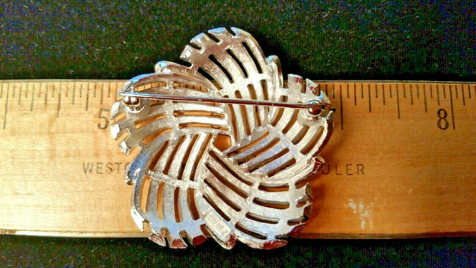 Vintage Signed Trifari Crown Silver Tone 2" Flowerette Swirl Designer Brooch Pin
