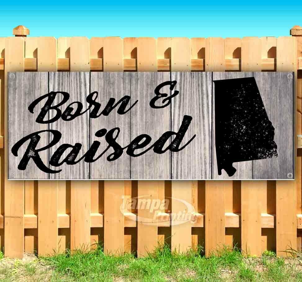 Born & Raised Alabama Advertising Vinyl Banner Flag Sign Many Sizes Available