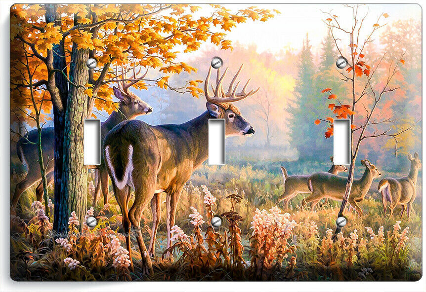 WHITETAIL DEER BUCK AUTUMN FOREST 3GANG LIGHT SWITCH WALL PLATE CABIN ROOM DECOR