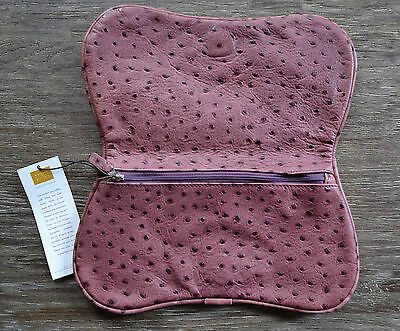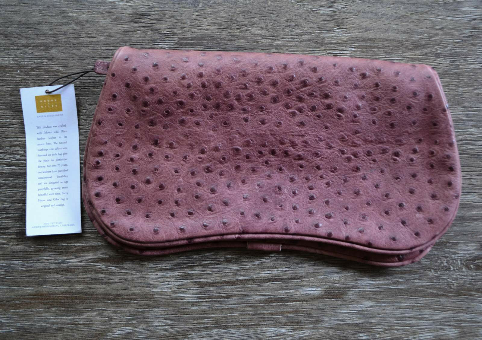 Moore & Giles Anne Leather Clutch Purse Purple Ostritch Pattern
