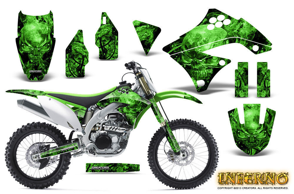 KAWASAKI KXF450 KX450F 09-11 GRAPHICS KIT CREATORX DECALS INFERNO GREEN