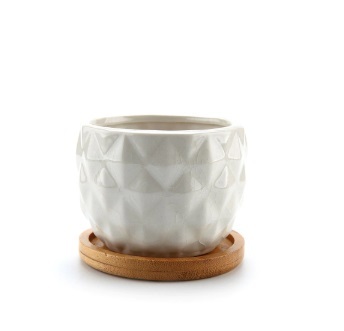 Ceramic Pineapple Succulent Pot Set with FREE Bamboo Trays White Pack of 2