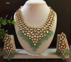 VeroniQ Trends-Indian Kundan Necklace Set in Emerald Green Stones,Wedding,Pearl