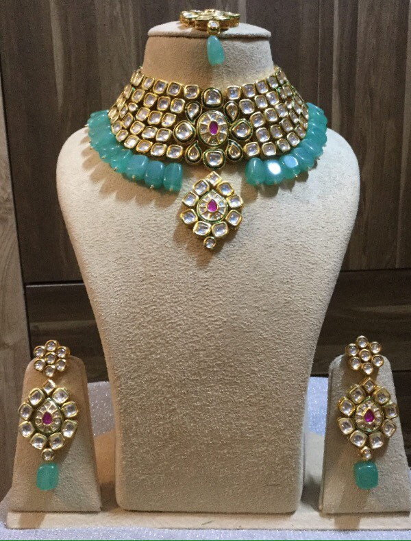 Veroniq Trends-Indian Choker Kundan/Polki Necklace Set in fluorite stone,Wedding