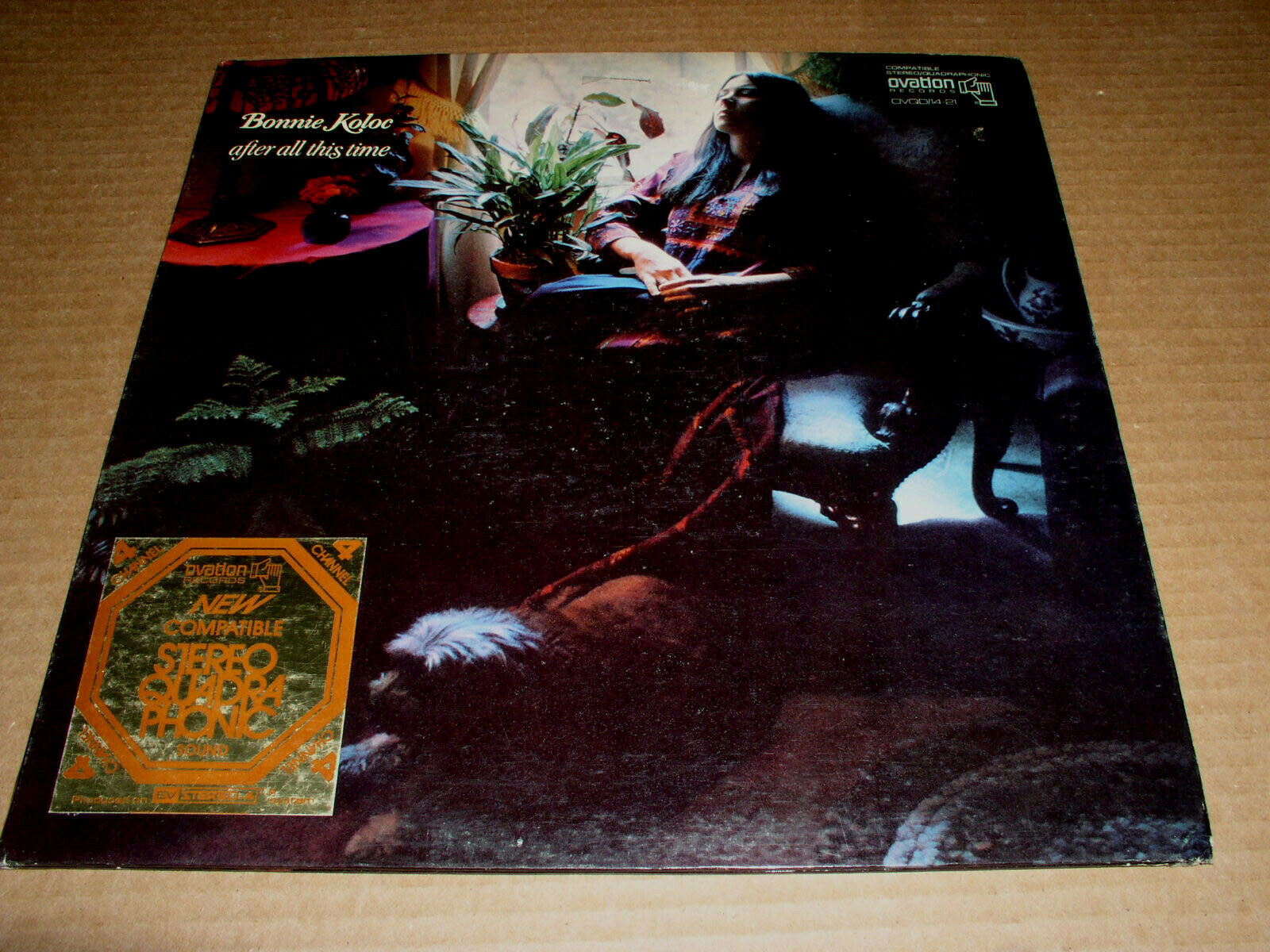 This is a vintage Quadraponic phonograph record album by Bonnie Koloc, entitled, "After All This Time". Record label: Ovation OVQD/14-21. Gatefold cover. There is no inner sleeve.