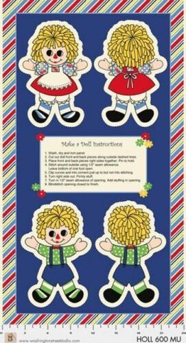 23.5" X 44" Panel Holly's Dollies DIY Rag Doll Dolls Make A Doll Stuffed Toys Kids Children's 1930's Depression Era Vintage-Look Cotton Fabric Panel (D515.14)