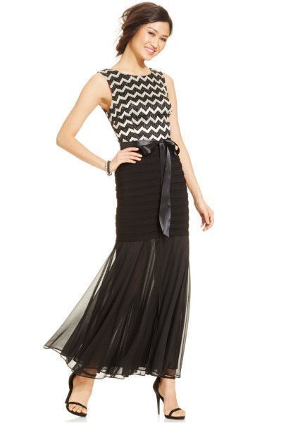 Betsy & Adam New Black/Gold Chevron Chiffon and 50 similar items