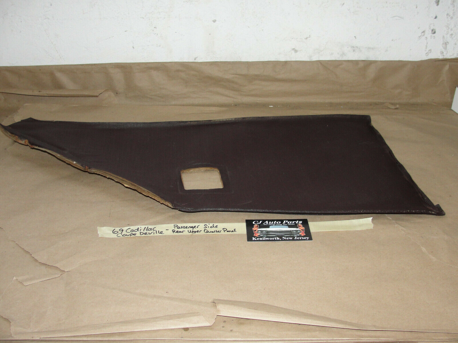 69 Cadillac Coupe Deville RIGHT PASS INTERIOR REAR UPPER QUARTER SAIL PANEL TRIM