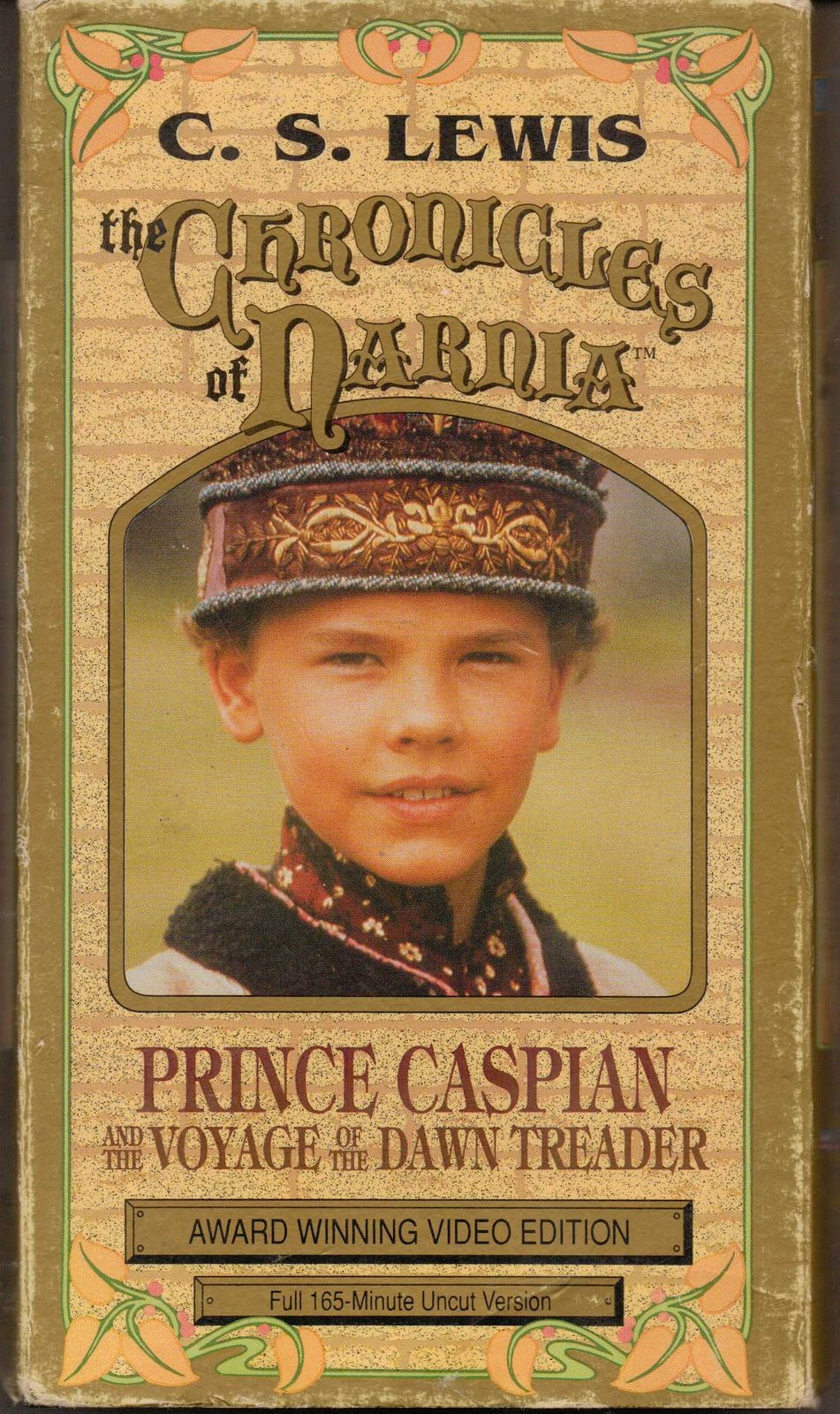 Product description: Title: C.S. Lewis Chronicles of Narnia Prince Caspian and the Voyage of the Dawn Treader Format: VHS Starring: Richard Dempsey, Sophie Cook, Jonathan Scott, and Sophie Wilcox. Approximate run time is: 165 minutes Version: Full 165 Minute Uncut Version ISBN: 0-88070-481-0 The Magical Land of Narnia is ruled by the corrupt King Miraz. His nephew Prince Caspian calls on Lucy, Peter, Susan, and Edmond to help him defeat Miraz and restore Narnia to its former glory. Years later Caspian, Lucy, Edmond, and obnoxious cousin Eustace set sail to rescue the six lords who were banished by Caspian's evil uncle. Their adventures lead them to a golden lake, a giant sea serpent, a fierce dragon, and finally, the edge of the world.