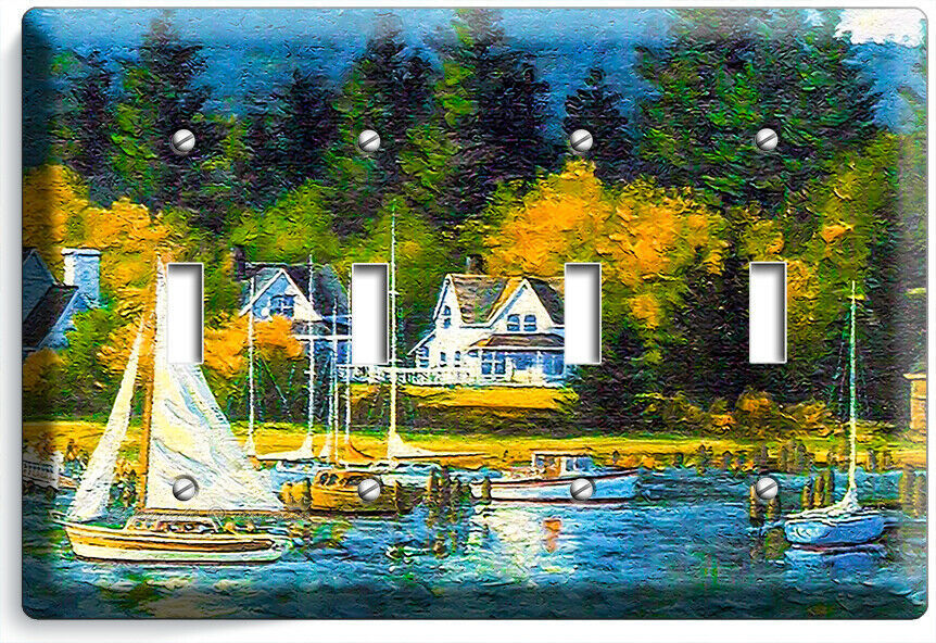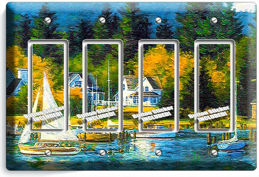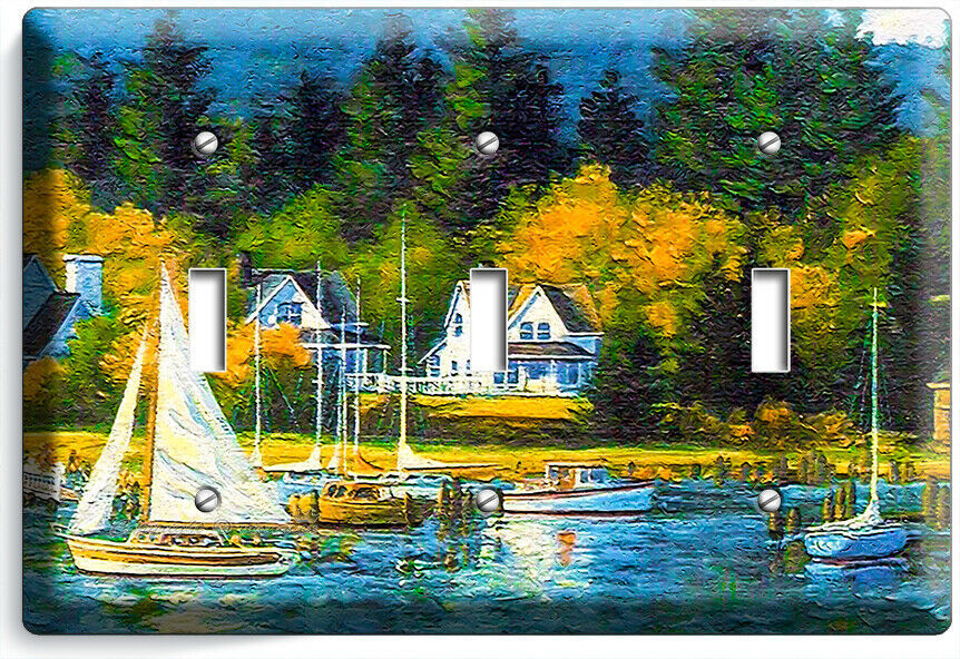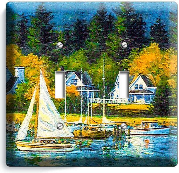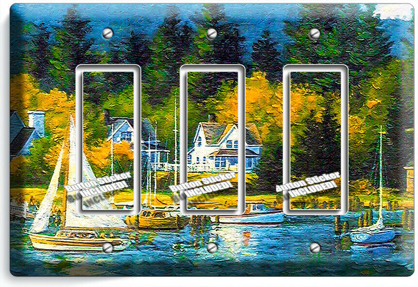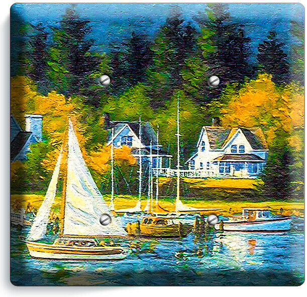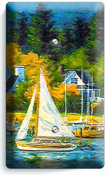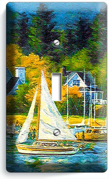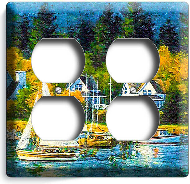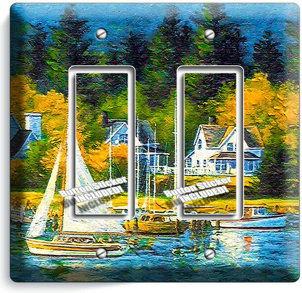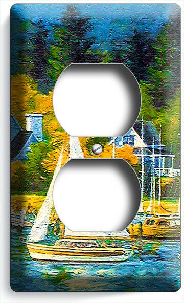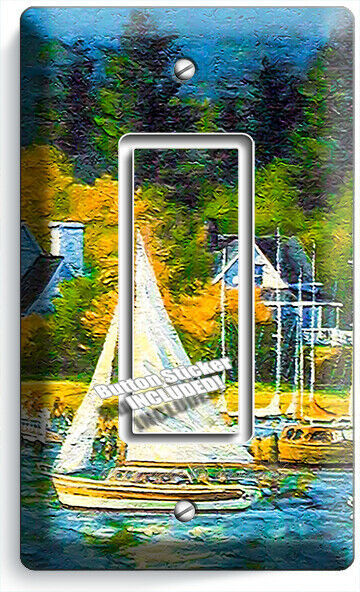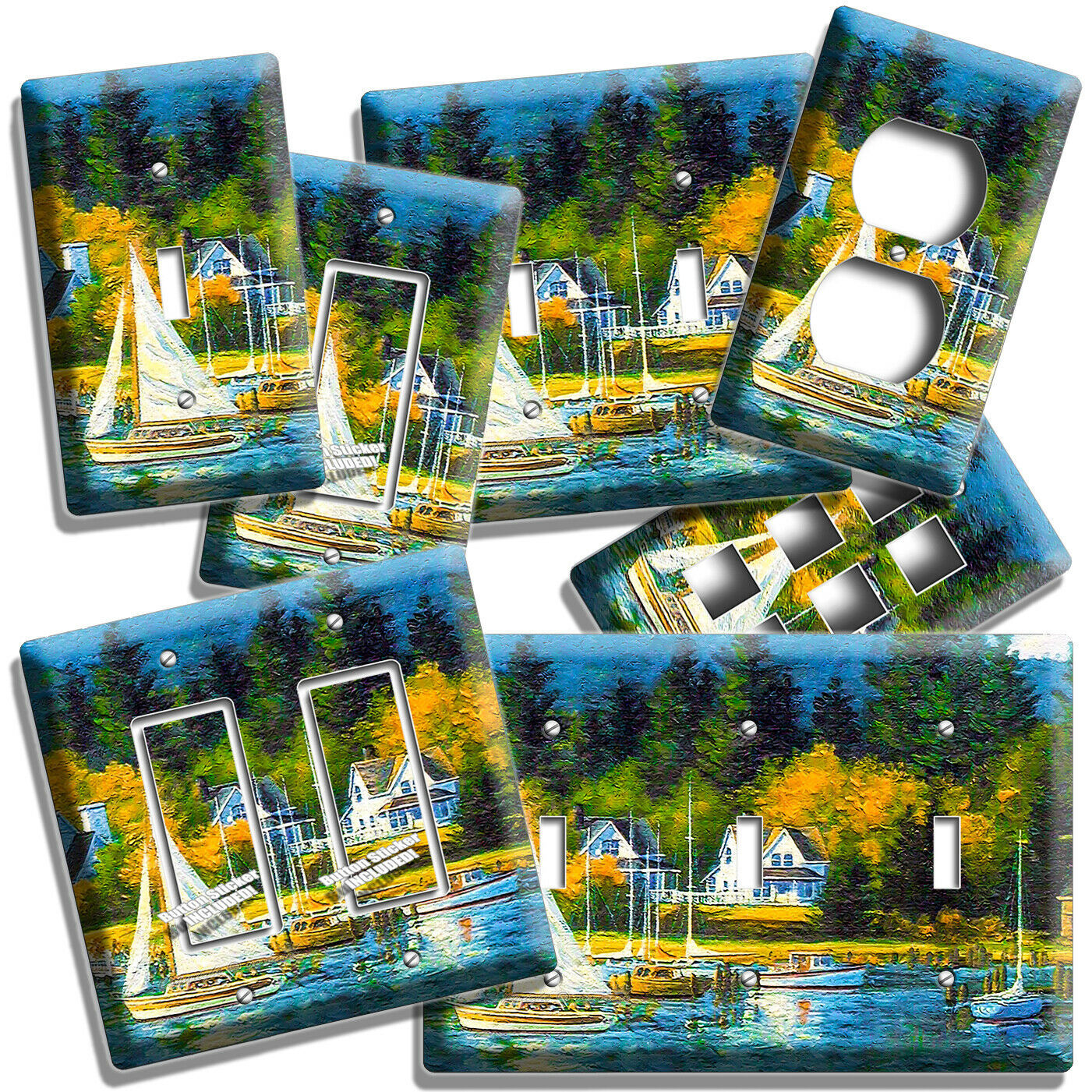FISHING TOWN SALE BOAT ON A LAKE LIGHT SWITCH OUTLET WALL PLATE CABIN ROOM DECOR