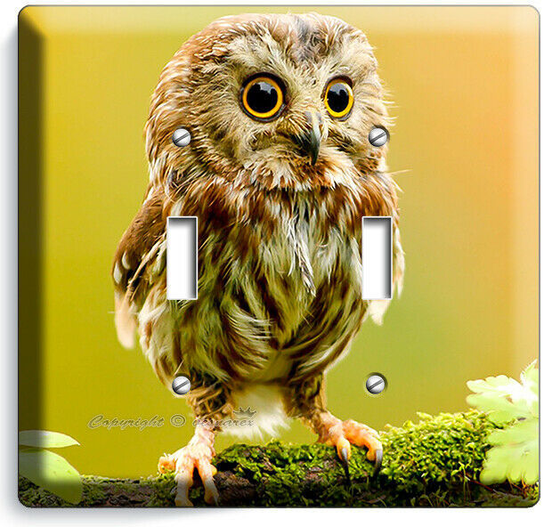 CUTE LITTLE BABY OWL LIGHT SWITCH 2 GANG WALL PLATES BEDROOM NURSERY ROOM DECOR