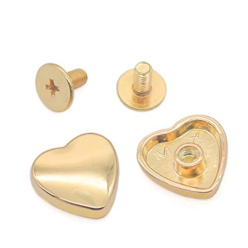 Bluemoona 10 Pcs - 14x14mm Metal Screwback Stud Heart Shape Rivets for Craft Bel