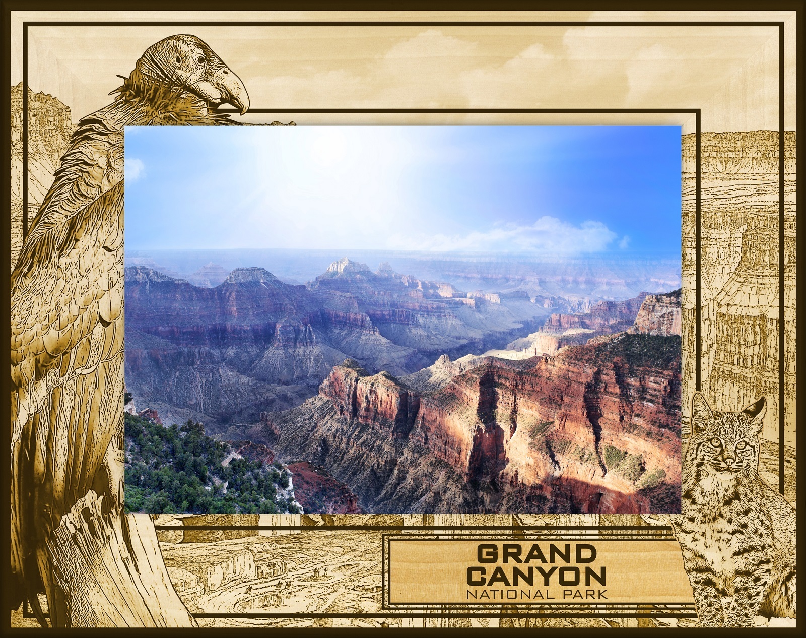 Grand Canyon National Park with Bobcat Laser Engraved Wood Picture Frame (5 x 7)