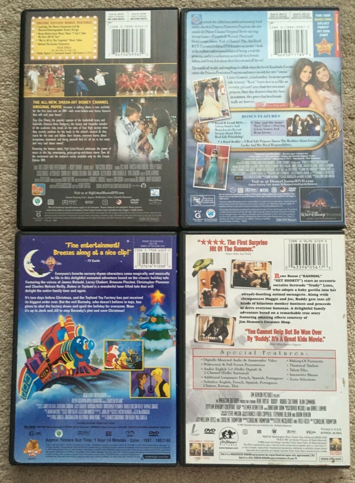 4 Family Kid Movies DVD Lot - High School Musical, Princess Protection, Toyland