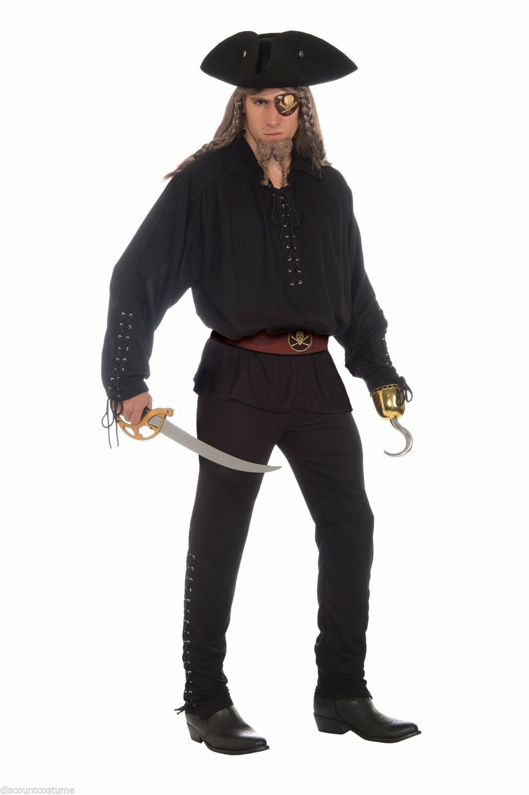 BLACK PIRATE SHIRT BUCCANEER MUSKETEER COLONIAL RENAISSANCE ADULT HALLOWEEN