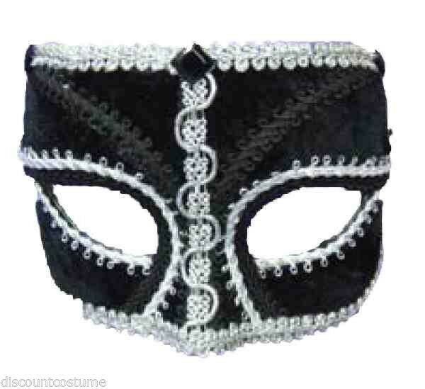 BLACK VELVET VENETIAN STYLE MARDI GRAS MASQUERADE MASK w/SILVER TRIM