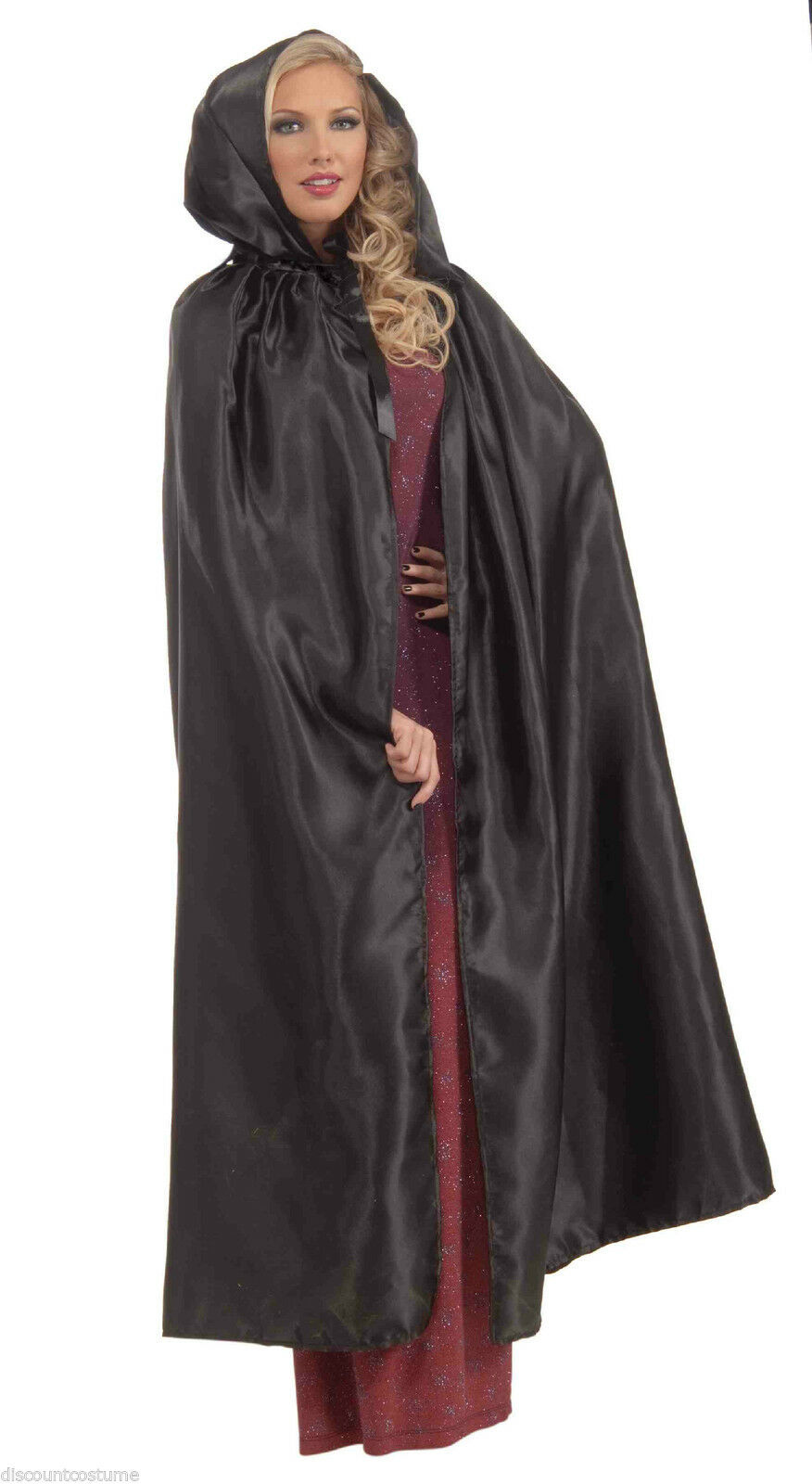 FANCY MASQUERADE BLACK SATIN HOODED EXTRA LONG CAPE HALLOWEEN COSTUME ACCESSORY