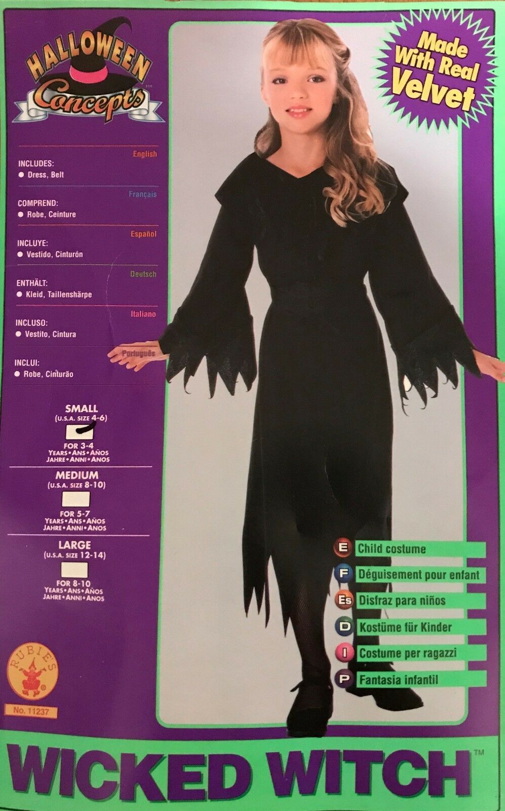 LITTLE GOTHIC WICKED WITCH CHILD HALLOWEEN COSTUME GIRL'S SIZE SMALL 4-6