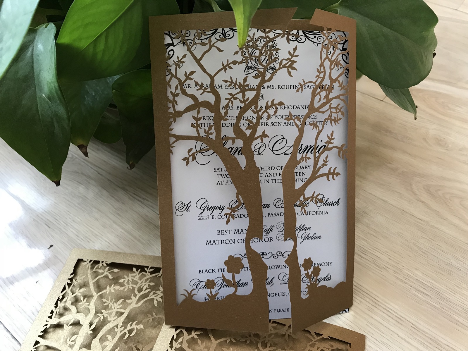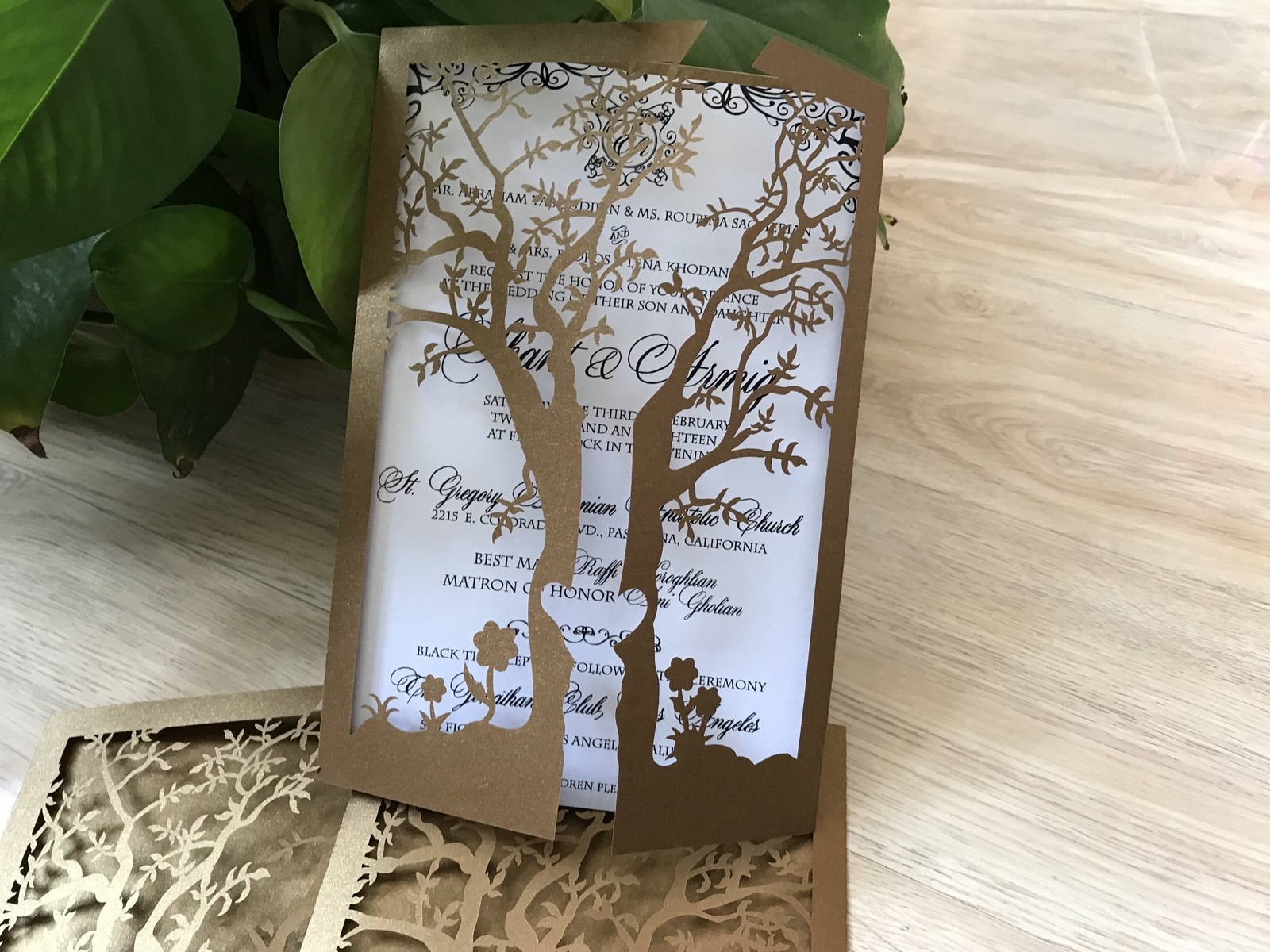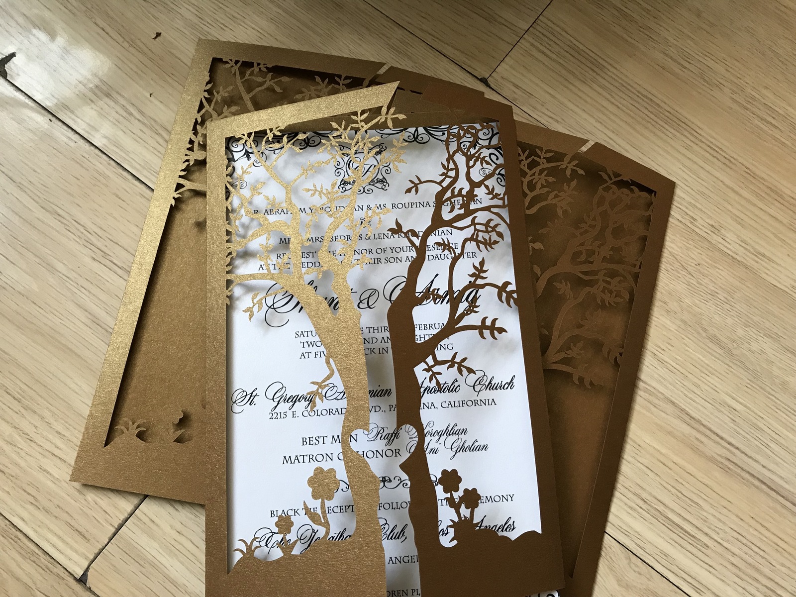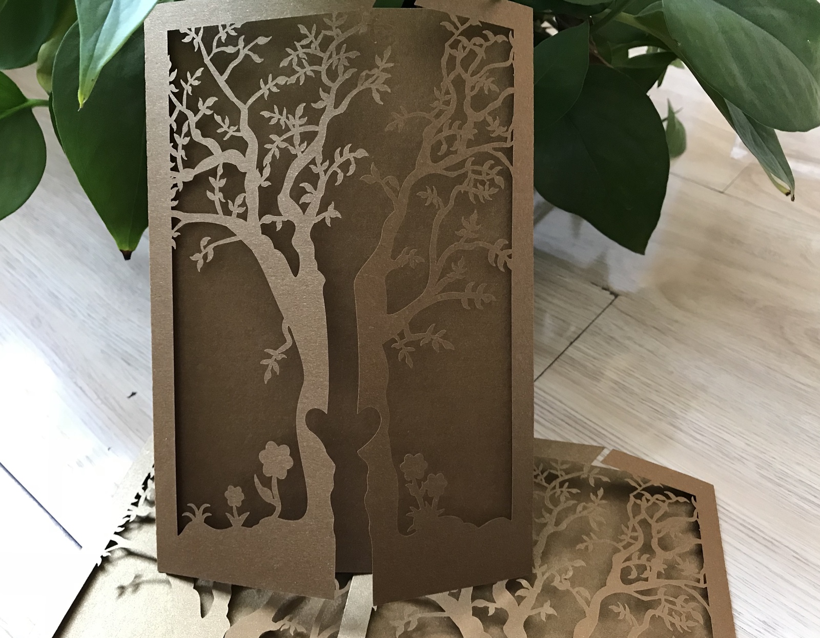 50pcs Tree Brown Laser Cut Gatefold Doors Invitation,More Colors Available,Laser Cut Invites for Wedding, Sweet Sixteen Birthday Greeting