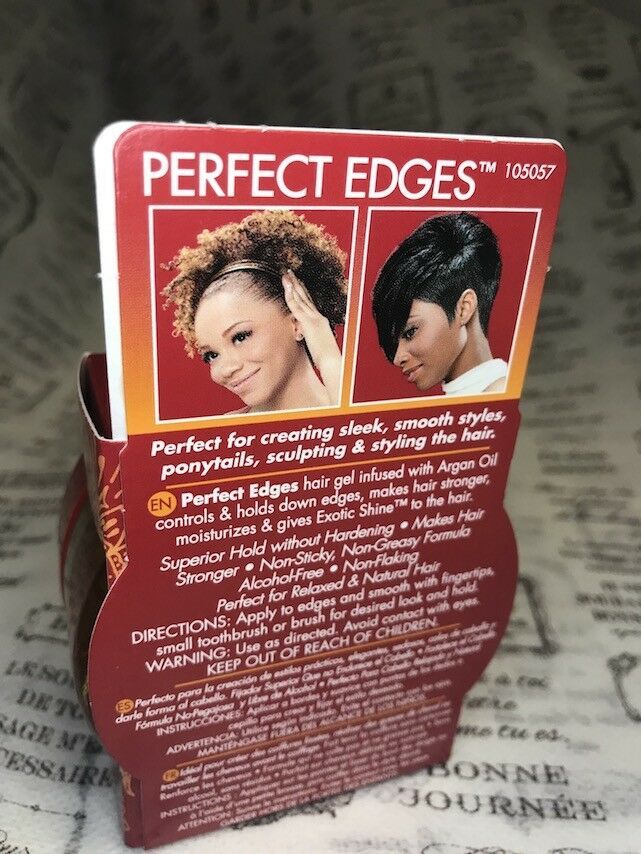 WITH ARGAN OIL FROM MOROCCO. PERFECT HOLD, EXOTIC SHINE AND MAKES HAIR STRONGER. PERFECT EDGES HAIR GEL INFUSED WITH ARGAN OIL CONTROL AND HOLD DOWN EDGES, MAKES HAIR STRONGER, MOISTURIZES AND GIVES EXOTIC SHINE TO THE HAIR.