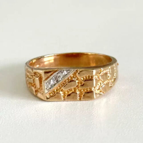 14k Rose Gold Plated 925 Silver Handmade 14.5mm Wide Textured Fashion Ring