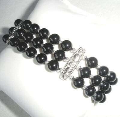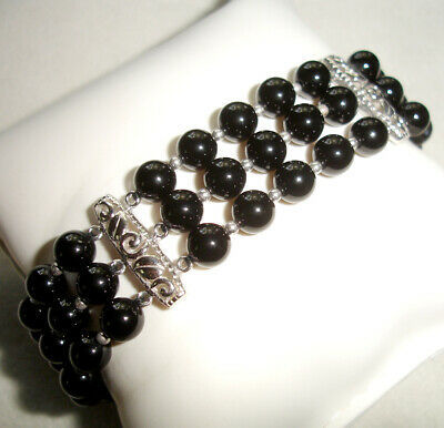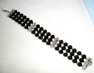 Sterling Silver 3 Row Black Agate Bead and 50 similar items