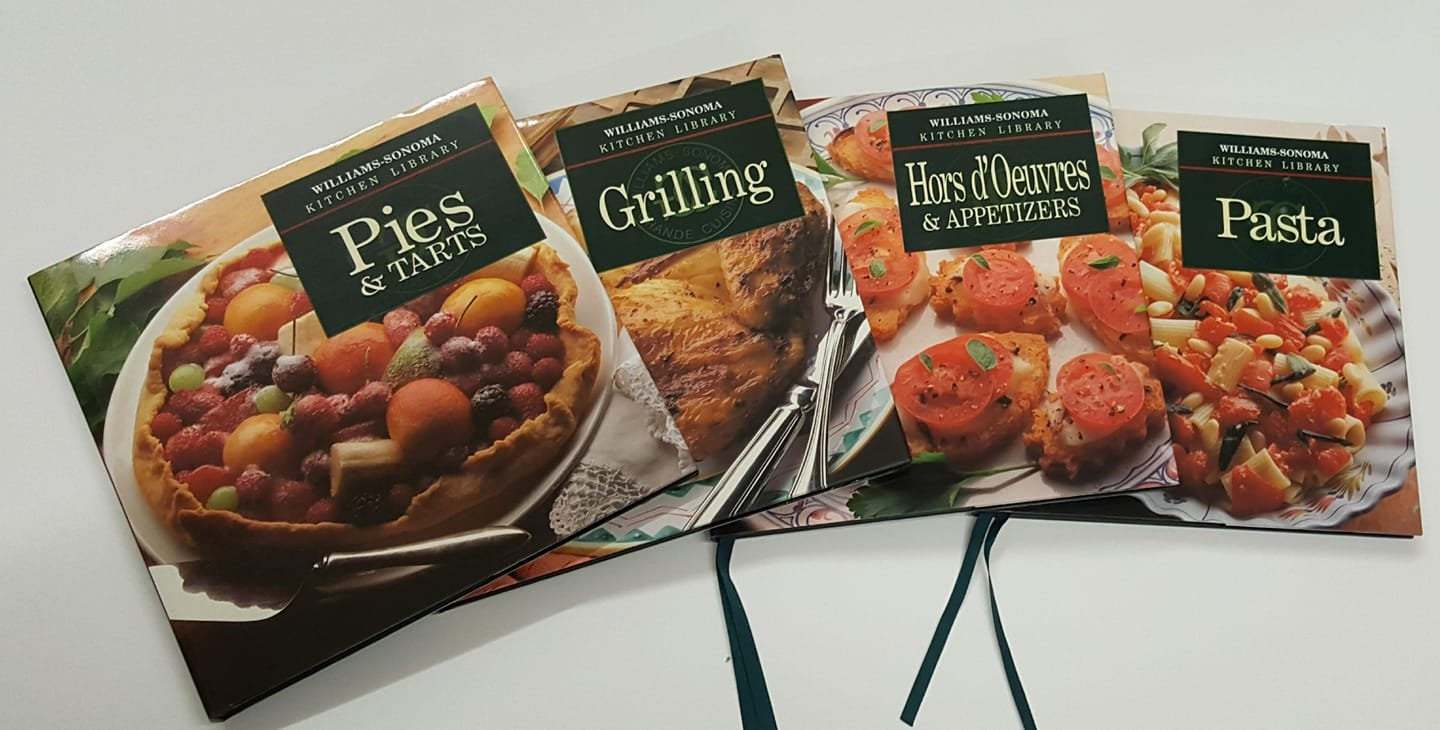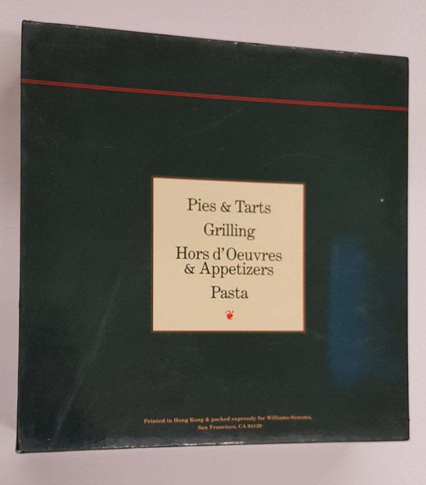 This boxed set of four hardback books with dust jackets was published expressly for Williams Sonoma. Each book is contains great recipes with beautiful pictures. This is volume 1 of the series. It includes the books Pies Tarts, Grilling, Hors d'Oeuvres Appetizers, and Pasta.