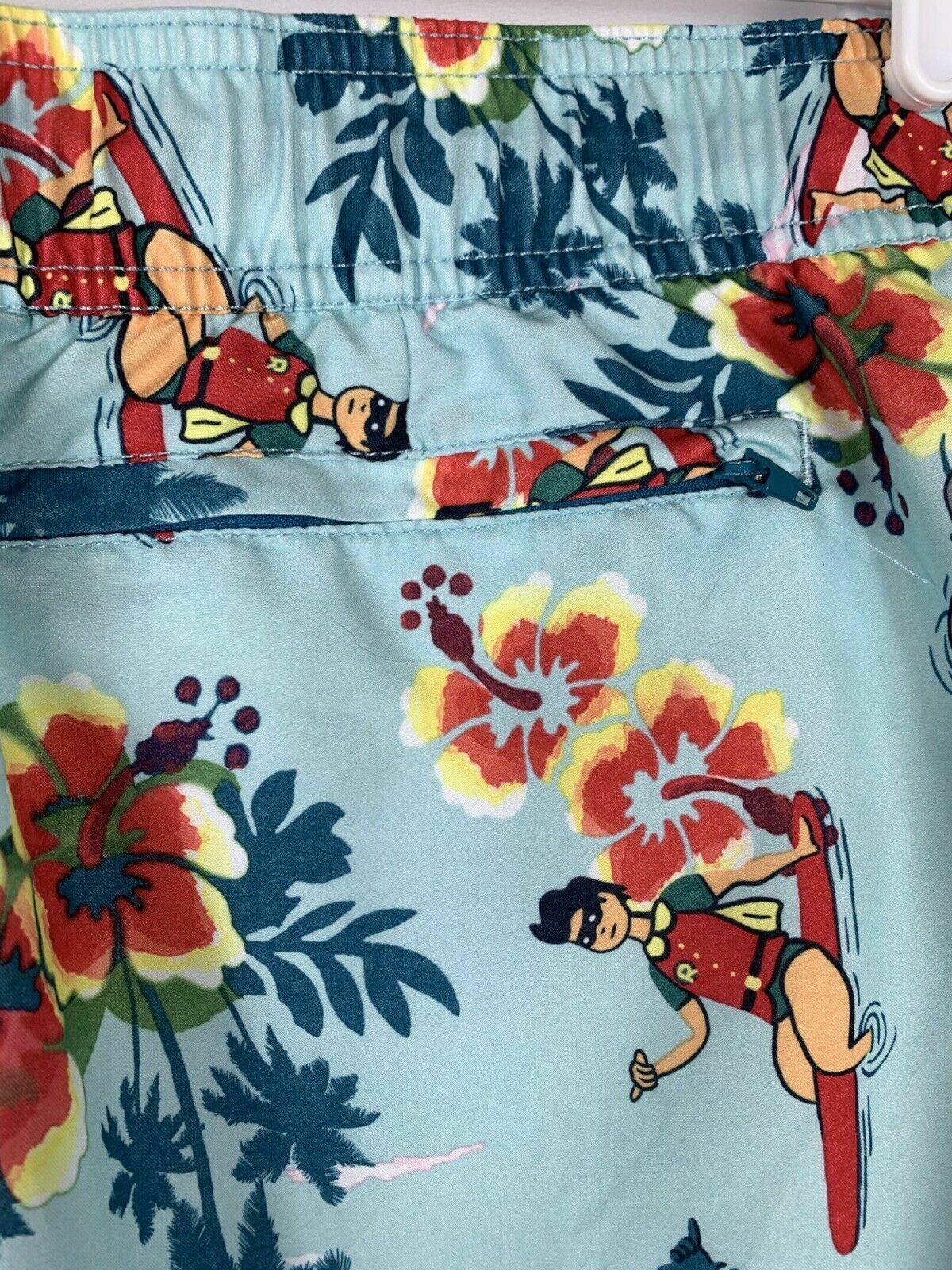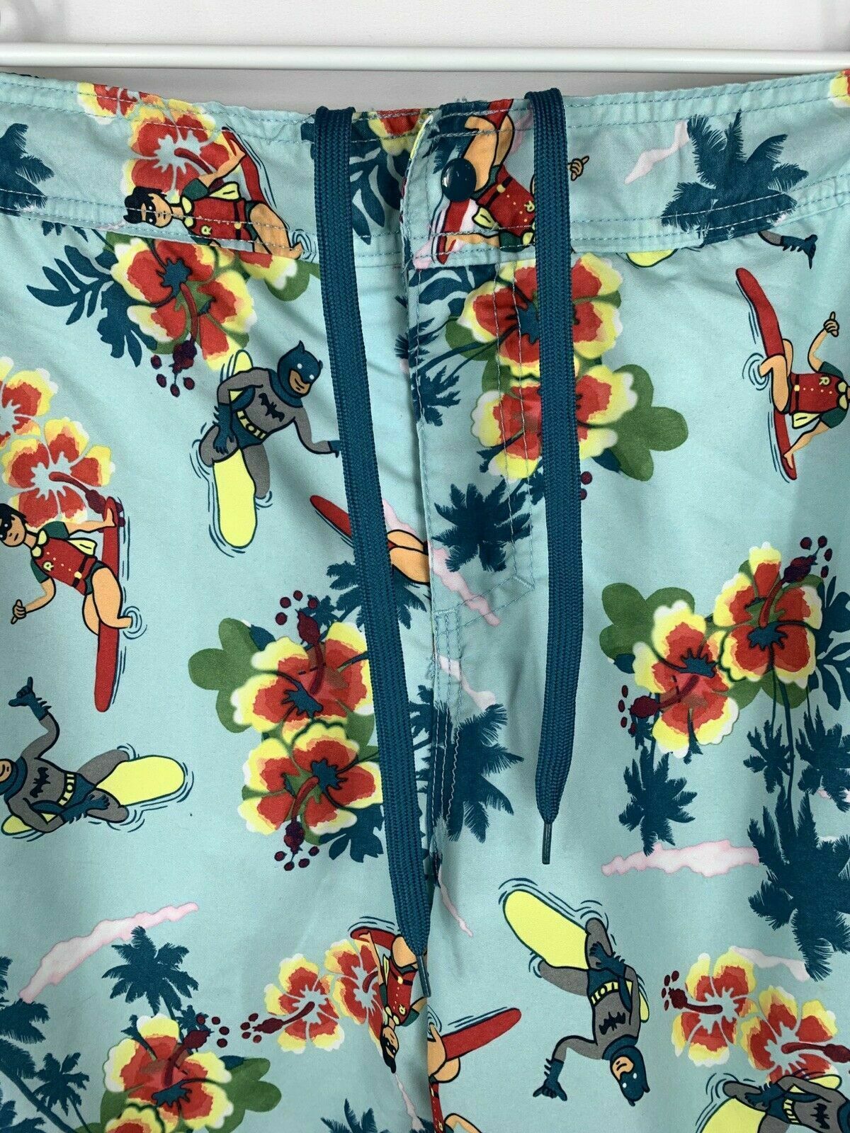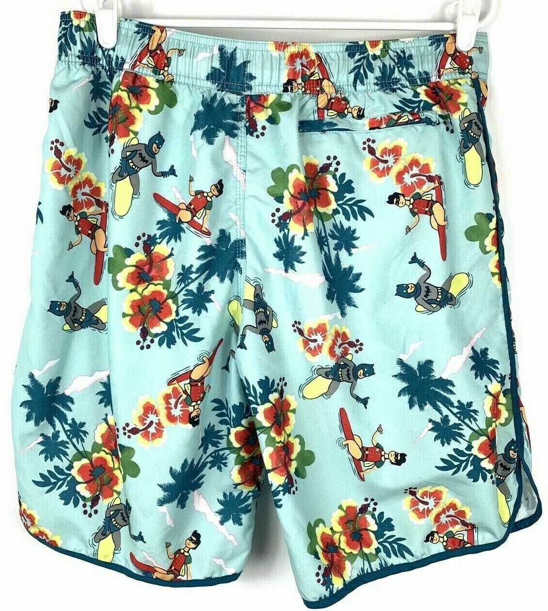 Vintage DC Comics Batman & Robin Floral Hawaiian Swim Trunks Board Shorts Men L