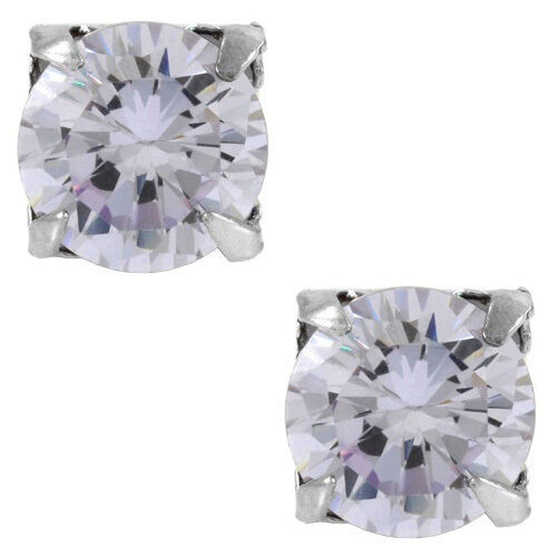 Purple Lavender Round Cut Diamond CZ .925 Sterling Silver Magnetic Stud Earrings No Piercing 6mm 5mm