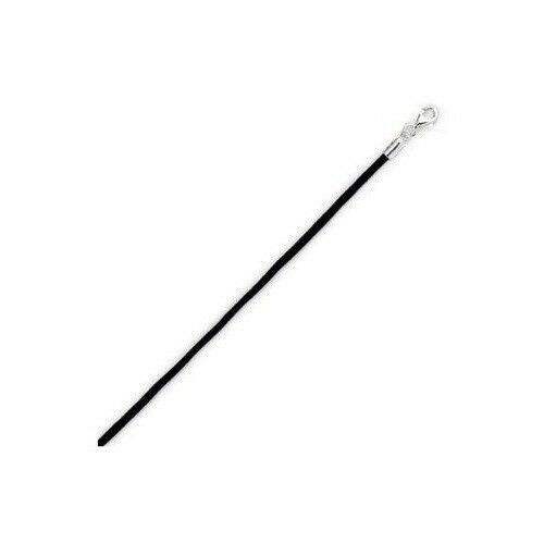 This black rubber cord chain features a 1.5 mm chain with a sterling silver