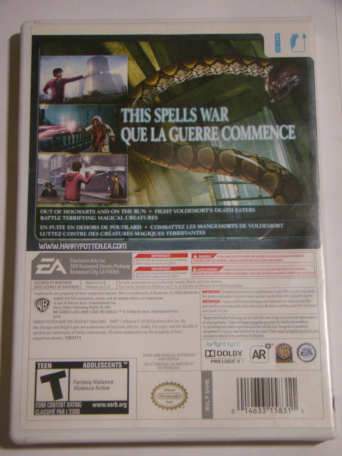 Nintendo Wii - Harry Potter and the DEATHLY HALLOW PART 1 (Complete with Manual)