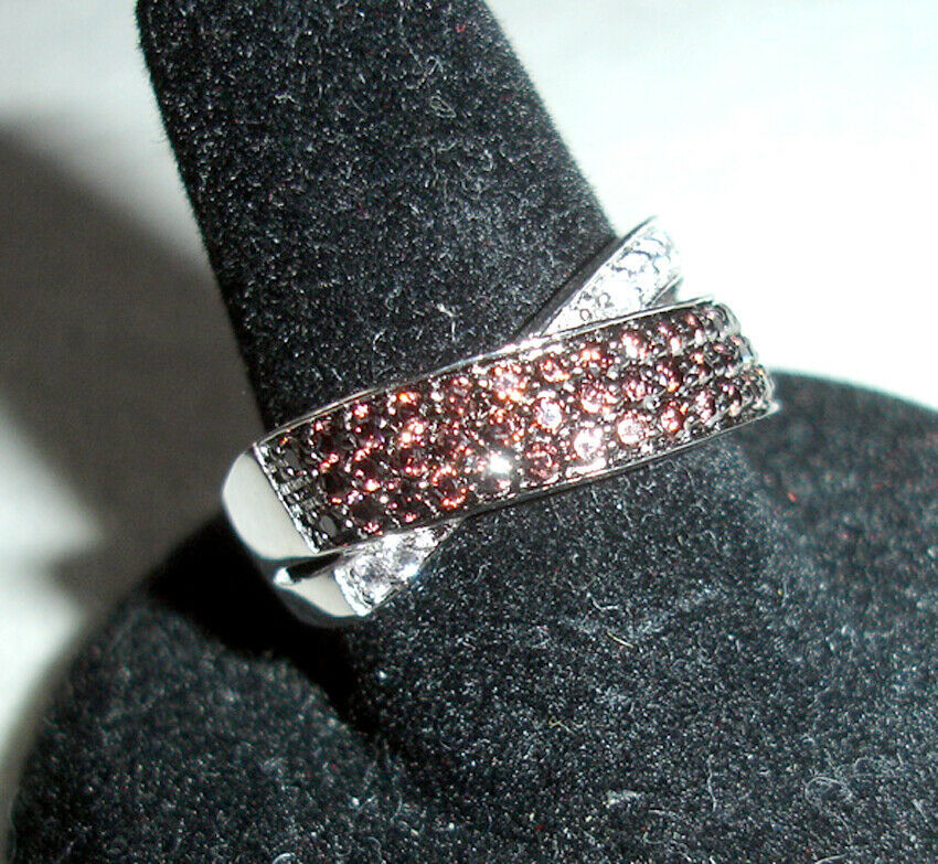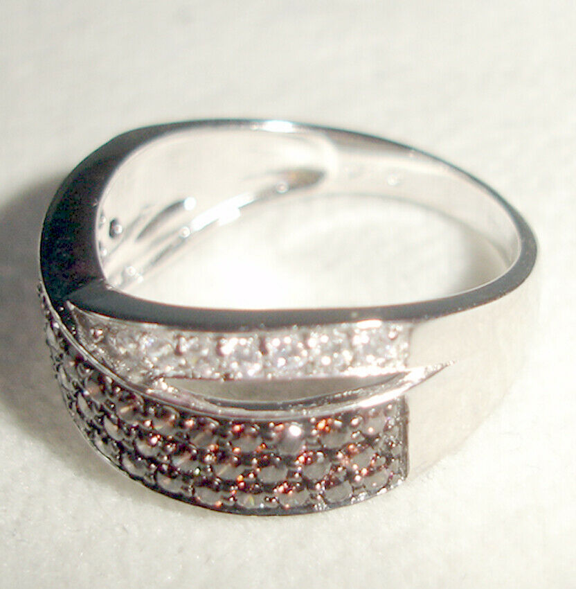 Sterling Silver RING w/Swarovski CZ's Fancy Crossover Brown & White by Lenox New